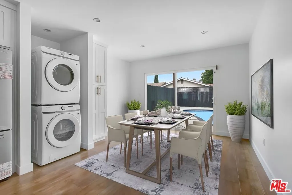 Nestled in a quaint neighborhood in the heart of Valley Village, this ultra-chic Contemporary Renovation, combines a clean and modern aesthetic in a warm and inviting atmosphere with exquisite finishes! Located moments away from Noho Arts District and walking distance to the new NoHo West Shopping Center. This open concept design was just completed after being taken down to the studs. This impeccably remodeled home boasts a gorgeous chef's kitchen with high end custom cabinetry and brand new stainless steel appliances. The main living space flows seamlessly and boasts sliding glass doors that allow you to enjoy indoor/outdoor living. Stunning wide plank white Oak flooring spans the home, An expansive and sumptuous Primary Suite has a spa-worthy master bath with an oversized shower, dual sinks, a large walk-in closet and another set of sliding glass doors that flows seamlessly into the backyard that has a beautifully re-done heated pool & spa, oversized privacy fencing with ample patio/lounge space. Home has been virtually staged to help tenant envision the design possibilities. Available May 1, 2026.
