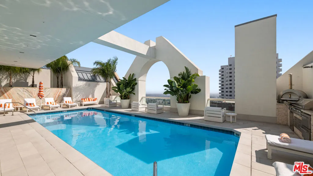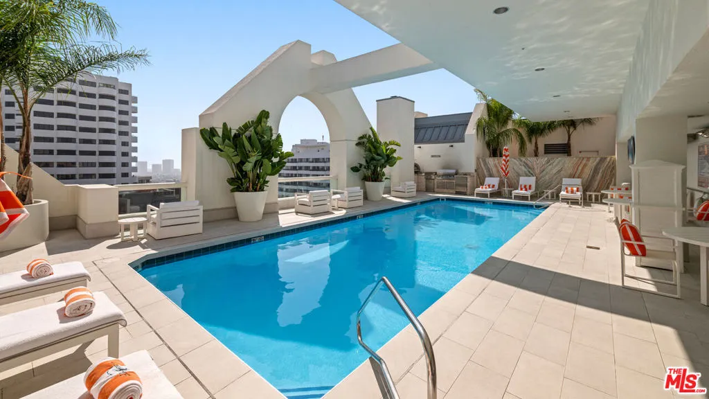 Set within the prestigious Dorchester located on the Wilshire Corridor, this bright, quiet and beautifully updated rear facing two bedroom two bath residence presents a rare opportunity. The home is positioned with a preferred south facing orientation, offering a peaceful and private setting. The interiors have been thoughtfully renovated with a refined, modern sensibility. Abundant natural light, clean lines and tailored details bring a sense of warmth and ease throughout. Both bedrooms are well separated for privacy. The primary suite is generously scaled with a walk in closet and a spa like bath designed for comfort and relaxation. Residents enjoy a full service lifestyle with 24 hour concierge, doorman and valet, along with secure parking. The Dorchester is known for one of the most sought after rooftop settings on the corridor, featuring a pool, BBQ, fitness center and sweeping city views. Just moments from Century City, Beverly Hills and Westwood, this residence offers a seamless blend of style, comfort and location in a premier full service building.