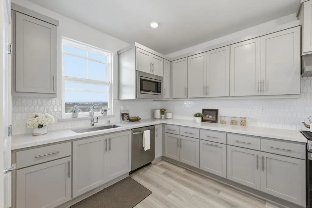 Positioned on a premium lot with no rear neighbors, this 2024 Bridgeway residence offers maximum privacy and incredible views that are a rare find within the community. The layout features dual primary suites, providing a versatile floor plan perfect for various living arrangements or a high-value rental. The home centers on a bright, open living area with natural light. The gourmet kitchen features a gas stove, designer cabinetry, premium quartz counters, and a walk-in pantry. Modern, light LVP flooring spans the upper levels, with the 2nd floor opening to a private balcony for relaxation and entertaining. In the dining area, large windows frame breathtaking sunset views. Functional upgrades include a built-in workspace, energy-efficient construction, and a finished epoxy garage floor. Step outside to a curated oasis with a private yard, premium pavers, and an architectural retainer wall. Resort-style living is at your doorstep, with a playground and trail entrance down the street. Residents enjoy a short walk to the dog park and clubhouse, featuring a pool and BBQ areas, while nature enthusiasts will appreciate the nearby wildlife refuge trails. Commuting is effortless to tech hubs with easy access to the Dumbarton Bridge and I-880.