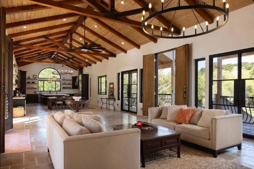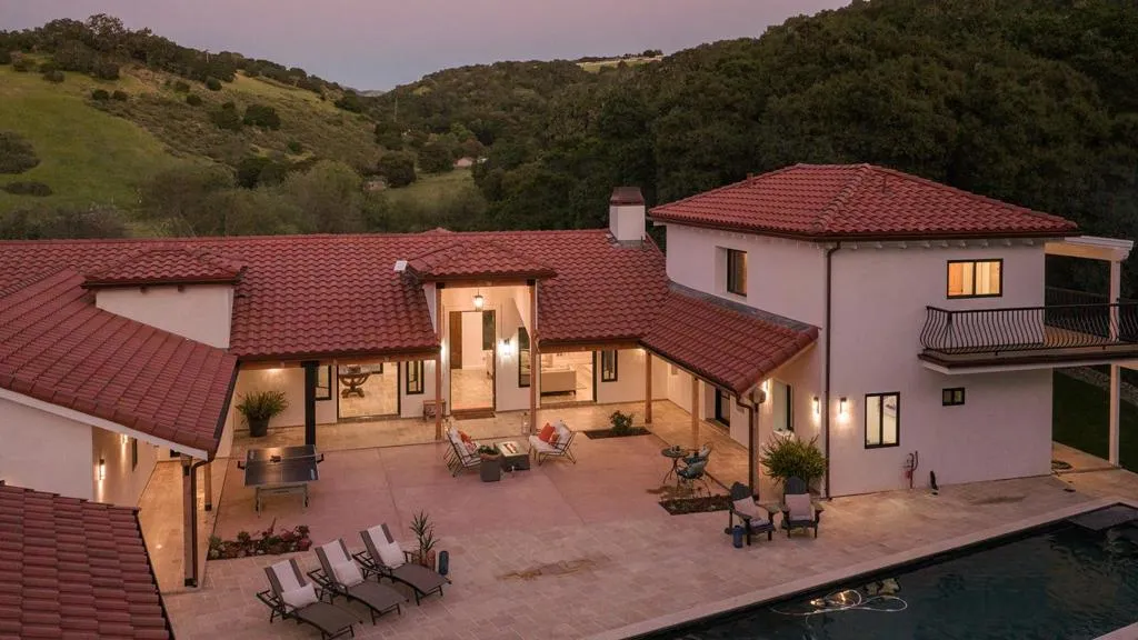 Discover luxury country living in this newly rebuilt in 2024 Spanish-style retreat, tucked behind a private gate on a generous 10-acre lot, offering nearly 3,500 sq. ft. of refined living with 4 bedrooms and 4.5 baths. Designed for comfort and elegance, the home features soaring ceilings, and expansive views and rolling hills, plus easy indoor-outdoor flow for entertaining or everyday moments. The property highlights a sparkling pool and spa with a built-in BBQ for seamless al fresco dining, a peaceful pond, a Bocce Court, an outdoor fire pit, and 56 olive trees set among iconic California Oaks, all providing ultimate privacy and, gorgeous views from nearly every corner. Easy access to Monterey, Carmel Valley, and the Highway 68 corridor completes this extraordinary offering a true sanctuary that blends timeless California Spanish charm with the best of coastal living.