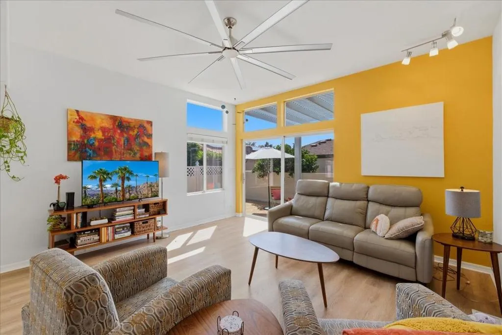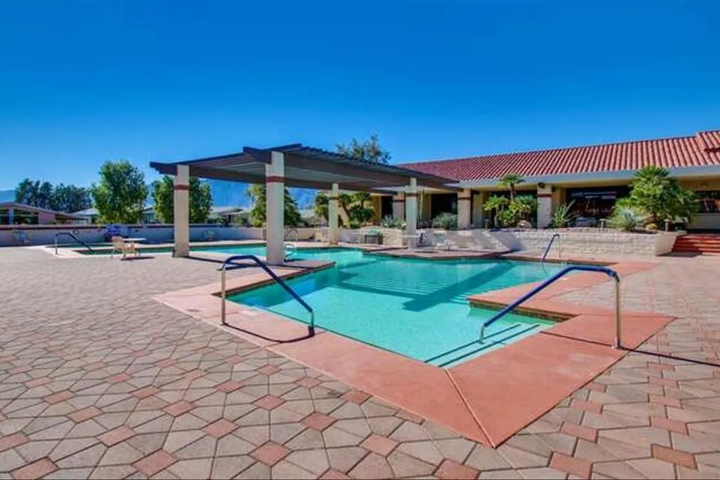 Your new desert home is here, with everything on your wish list! Updated, move-in ready, fully-owned solar, 2-car garage, and you own the land! This is one of the best and most affordable homes you will find in the greater Palm Springs area. This beautiful home has been impeccably maintained and lovingly cared for by its owners. With a great, livable layout and tall ceilings, this home is bright and spacious. The clerestory windows in the open-concept living/dining area fill this home with welcoming light.The eat-in kitchen is large with good counter space and lots of cabinets. Each bedroom is spacious and accommodates additional seating for flexible use of the spaces. And the primary bedroom suite has a walk-in closet. The bedrooms are on opposite ends of the home, providing ideal separation between you and your guests. A separate laundry room is well-positioned between the bedrooms. Outside are multiple areas, easily configurable for how you want to live. The rear patio is ideal for enjoying the indoor/outdoor desert lifestyle. The side patio and yard are great for dining and entertaining. And if you have pets, they can enjoy it too! The entire home has just been repainted and is ready for you to move right in! Vista Montana offers resort-style amenities in an exclusive 55+ community with a low HOA of just $329. The community is guard-gated and has a wonderful clubhouse with newly updated gym/workout room, 2 sparkling pools, 2 spas, dog parks, green space, and well-maintained roads and walkways throughout. Palm Springs is a short drive away! Do not miss this opportunity. Homes like this do not come along often! Call to see it TODAY.