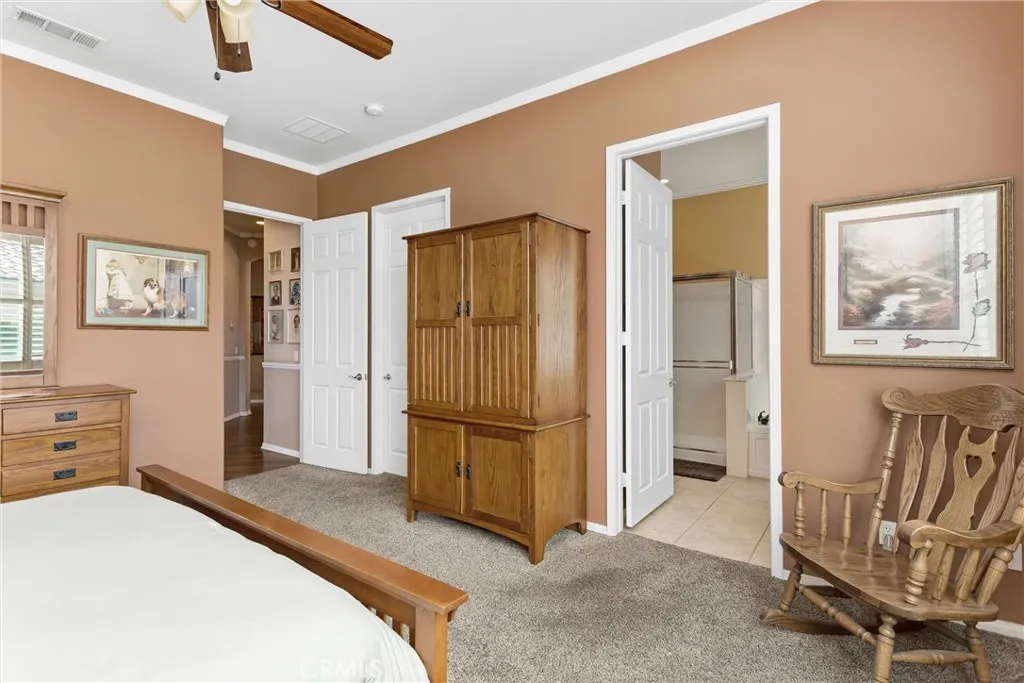 ***Corner Lot and Updated*** Located within the gated 55+ community of Sun Lakes, this 3 bedroom 2 bath true pride of ownership single story home offers a comfortable and practical layout with thoughtful updates and inviting outdoor space. The exterior presents clean curb appeal with a tile roof, stone accents, and a covered front entry framed by mature landscaping and a shaded lawn. Inside, wood flooring runs through the main living areas, complemented by neutral tones, crown molding, and plantation shutters that bring in natural light while maintaining privacy. The living and dining areas connect to the kitchen, creating a functional flow suited for both everyday living and casual gatherings. The kitchen features granite countertops, updated cabinetry, stainless steel appliances, and a peninsula with bar seating. Bedrooms are positioned to allow separation and privacy, with soft carpeting and warm finishes that create a comfortable retreat, while the primary suite includes direct access to an ensuite bath with dual sinks, a soaking tub, and a separate glass enclosed shower. Additional interior highlights include an indoor laundry room with storage and a clean, organized garage with built in cabinetry and workspace potential. The rear yard is designed for low maintenance enjoyment, offering a covered patio with a slatted pergola cover, brick flooring, and space for outdoor dining or relaxing, all bordered by privacy fencing and mature greenery. Set within Sun Lakes, residents enjoy access to golf, clubhouse amenities, fitness facilities, dining, and a full calendar of community activities, making this home a strong fit for buyers seeking a balance of comfort, convenience, and an active lifestyle.