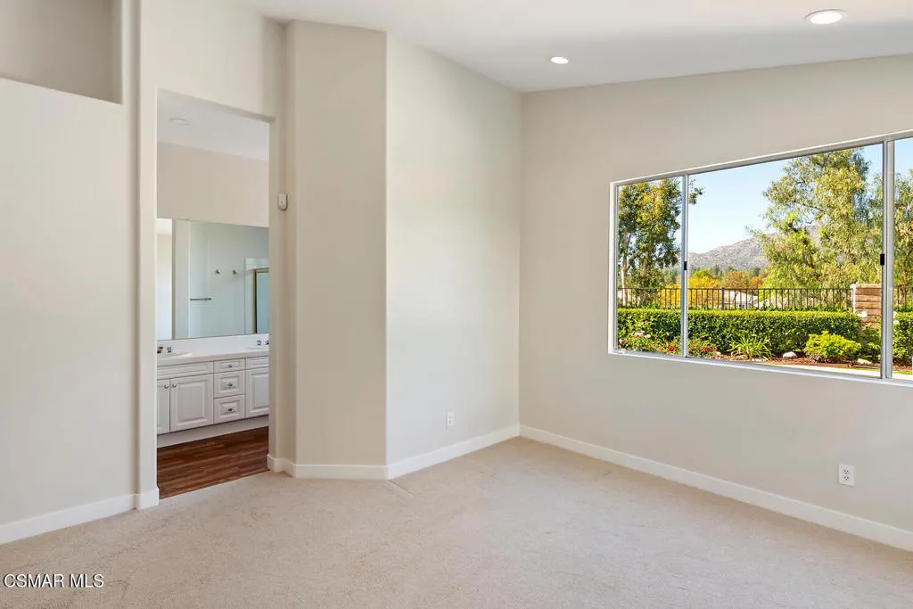 Beautifully updated single-story home in the highly desirable Monte Carlo community of Oak Park. This exceptional 3-bedroom, 2-bath residence is perfectly situated on an elevated lot, offering sweeping rolling hill views and an abundance of natural light throughout. The thoughtfully designed floor plan features a spacious living and dining area upon entry, leading to a large kitchen that opens seamlessly to the inviting family room with a cozy fireplace--ideal for everyday living and entertaining. Additional highlights include real hardwood flooring, an attached 2-car garage with built-in storage, an indoor laundry room, security system including security cameras and ring doorbell, an EV charger and a brand new 200-amp electrical panel. 3 main rooms are pre-wired for ceiling fans, enhancing comfort and efficiency, and attractive top down, bottom up window shades provide maximum versatility. The beautifully landscaped yard with artificial turf provides a serene outdoor setting to relax and enjoy the surrounding views. A rare opportunity to own a truly special home in one of Oak Park's most sought-after neighborhoods.