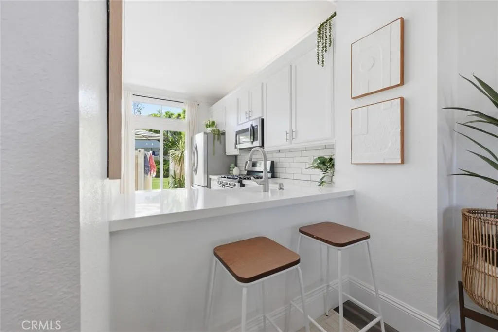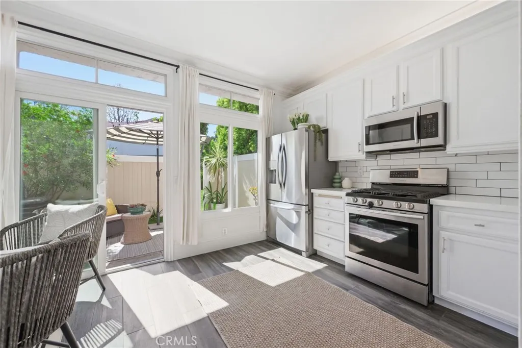 Welcome to 23654 Wellesley Court, a refined and beautifully upgraded residence tucked within the storybook setting of Hampton Village. Bathed in natural light and rich in character, this exceptional home captures the perfect balance of elegance, comfort, and convenience. Thoughtfully improved throughout, the interior showcases luxury laminate flooring, custom millwork, newer double-pane windows/sliders, a newer HVAC system and ducting, and full re-piping for added peace of mind. The kitchen has been tastefully reimagined with upgraded cabinetry and quartz countertops, while the bathrooms feature stylish new vanities and updated tile finishes that elevate the home’s overall design. Upstairs, a full-size laundry adds everyday convenience, while the one-car garage and seamless patio access enhance functionality. The private outdoor space is a true highlight—quiet, sun-drenched, and opening directly to the largest greenbelt in the community. A short stroll down the garden path leads you to the sparkling pool and spa and spacious lounge area. Ideally positioned in the very center of Hampton Village, this residence enjoys one of the most desirable locations in the community. Residents also enjoy direct access to the adjoining shopping center with Albertsons, Starbucks, multiple restaurants and entertainment. Adding even more value, Hampton Village is wrapping up a significant 2 million dollar community enhancement project, including all new paved streets coming soon. In addition, the highly anticipated $260 million Laguna Niguel City Center is planned just two blocks away. This exciting project is designed to bring a vibrant mix of retail, restaurants, wellness, and civic spaces to the area. For those seeking a move-in ready home with timeless charm, quality upgrades, abundant sunshine, and an outstanding setting, this is a rare offering not to be missed.