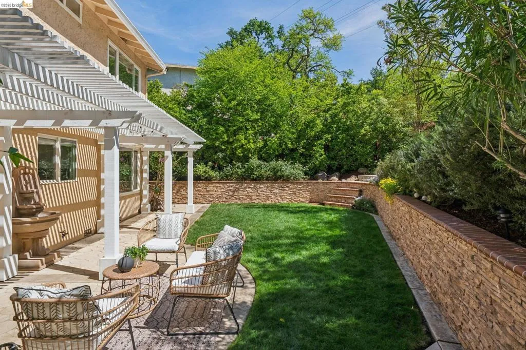 In one of Walnut Creek’s most prestigious and highly sought-after neighborhoods, this Rudgear Estates residence offers a rare blend of privacy, scale, and convenience. Set among mature trees on a quiet cul-de-sac, the home is not to be missed. As you enter, a newly added skylight in the entryway draws in natural light, highlighting Brazilian cherry hardwood floors and setting the tone for the thoughtfully updated interiors that follow. The flexible floorplan includes a main-level bedroom with adjacent half bath—ideal for guests, a home office, or multigenerational living. Upstairs, 3 additional bedrooms with a shared bathroom, and a spacious primary suite create a comfortable sense of separation and retreat. An impressive three-car garage with generous storage adds everyday functionality rarely found in this setting. The backyard is designed for indoor-outdoor living, featuring a pergola-covered patio ideal for entertaining and direct access to HOA-maintained open space, offering added privacy and a natural backdrop. Ideally located near downtown Walnut Creek, Broadway Plaza, Whole Foods, BART, and freeway access, and within top-rated Walnut Creek schools, this home offers the best of East Bay living—privacy, convenience, and connection.