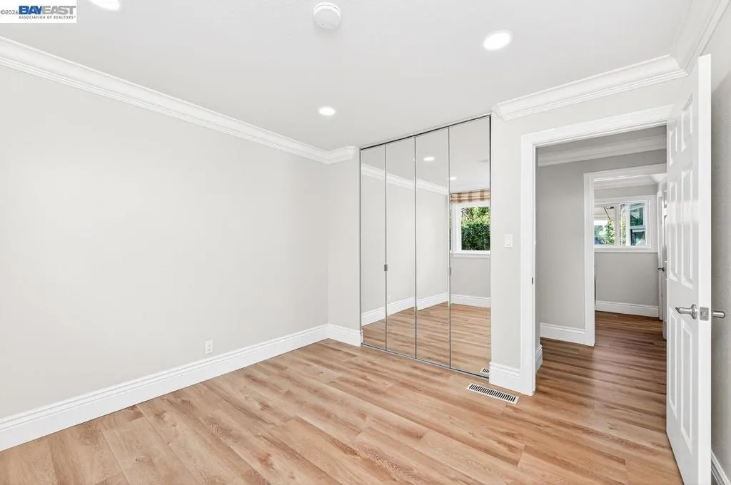 Beautifully updated single-story home in desirable Pleasanton offering 4 bedrooms, 2 baths, and 2,193 sq ft on an 8,603 sq ft lot with no right side neighbors! Featuring neutral LVP flooring and crown molding throughout, this home blends comfort and style. Enjoy a formal dining room and a well-appointed kitchen with custom wood cabinetry, stone countertops, stainless steel appliances, and a charming bay window. Full-size laundry room includes built-in cabinets for added convenience. Spacious bedrooms feature custom closet organizers and mirrored bifold doors. Updated hall bath offers a stone shower, double vanity, and backyard access. The primary suite includes backyard access, dual closets, and a beautifully finished bath with stone surfaces. Private backyard boasts mature trees, citrus trees, pergola, paver patio, and large detached finished shed complete with electrical and wall AC , perfect for outdoor storage or bonus office space.