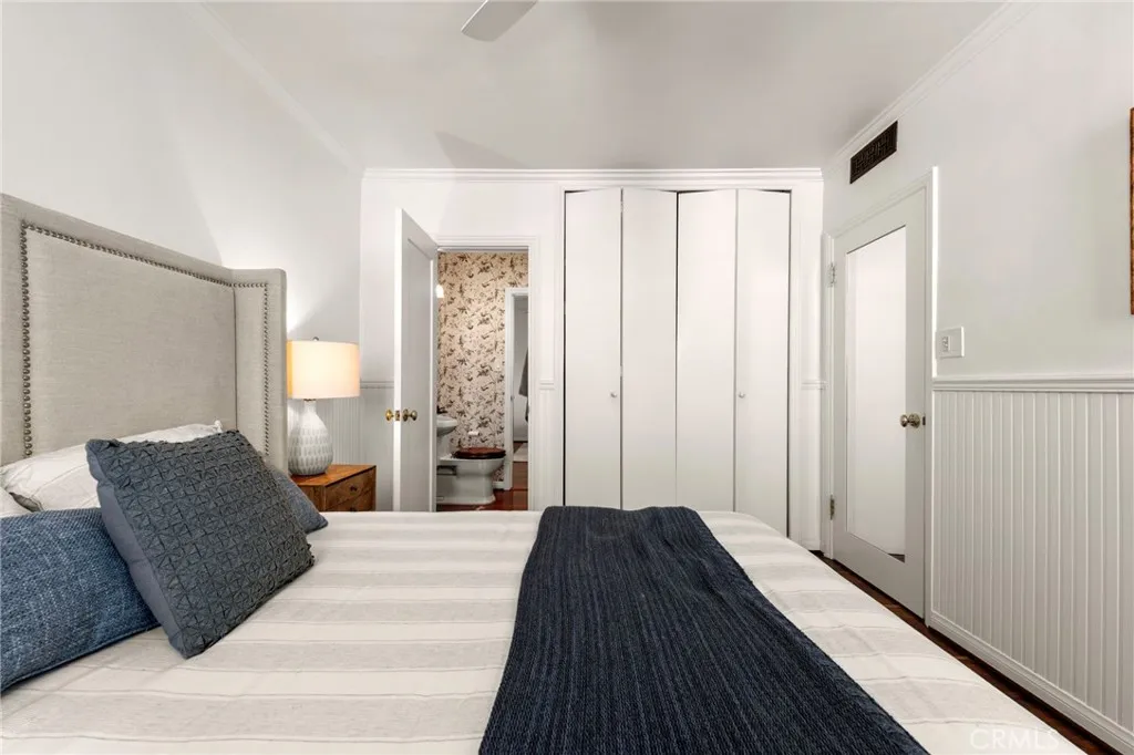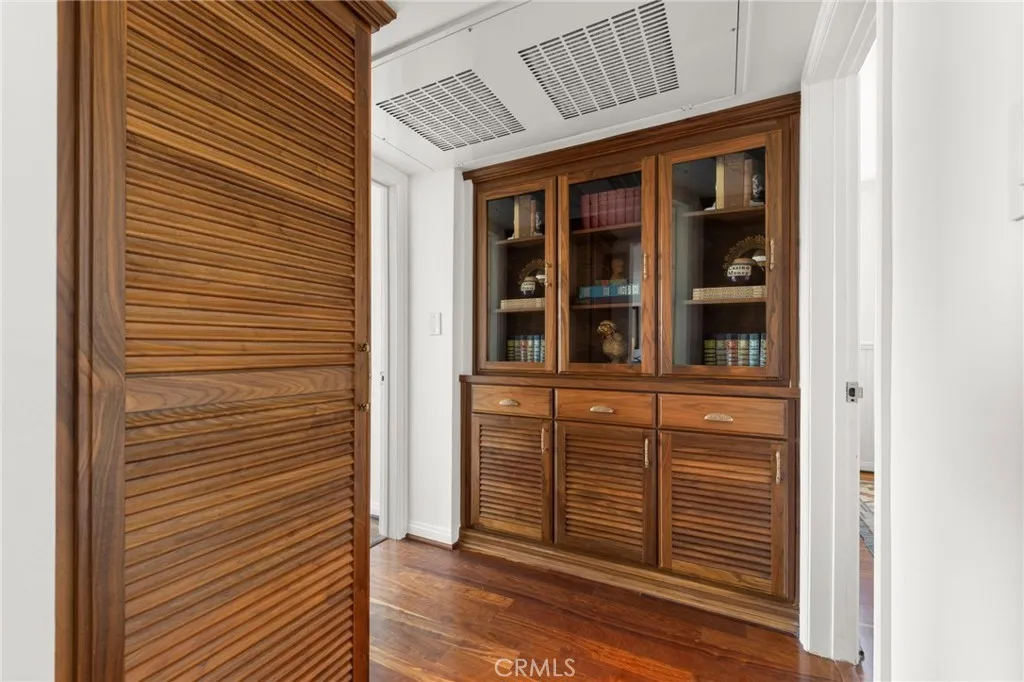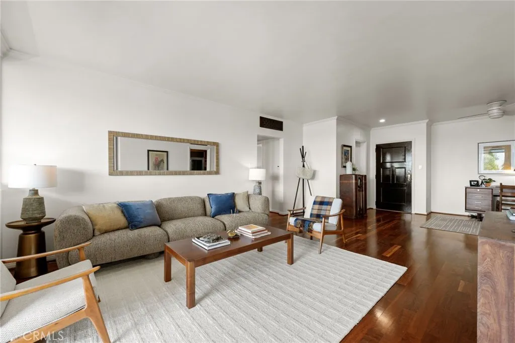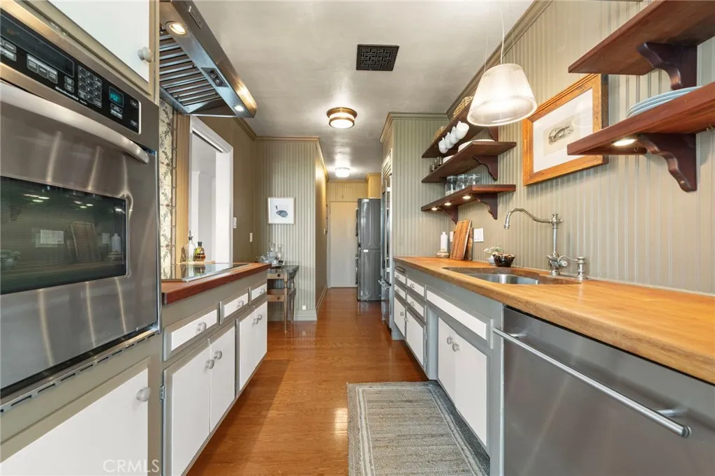 Top-floor corner unit on Naples Island with a private balcony and treetop views, offering a rare blend of privacy, natural light, and coastal living. Nestled in one of Long Beach’s most sought-after waterfront communities, this thoughtfully curated residence has been meticulously updated with quality finishes and attention to detail throughout. The custom kitchen (2018) features teak countertops, mahogany shelving, painted wainscoting, and premium appliances including Sub-Zero refrigeration and a Wolf cooktop with hood. A rare 1930s vintage tile backsplash adds character, while a Philippe Starck pendant provides a modern focal point. Rosewood flooring (2017) runs throughout the home, complemented by Milgard double-pane windows (2020) for enhanced comfort and sound insulation. Custom millwork, including a French walnut glass-front bookcase and added linen storage, brings both functionality and design. Both bathrooms were remodeled in 2019. The guest bath features hand-shaped tile, Kohler fixtures, a Toto eco-friendly toilet, and designer wallpaper. The primary suite offers a spa-like setting with marble finishes, a custom mahogany vanity, Perrin & Rowe fixtures, and a copper/zinc soaking tub, along with a heated towel bar. The expansive private balcony, accessible from both the living room and primary bedroom, creates a seamless indoor-outdoor flow and is ideal for enjoying the peaceful treetop surroundings. Additional features include central heating and AC, in-unit laundry, and a newer water heater (2019). The building is well-maintained and includes one designated parking space (#23) with overhead storage. HOA dues are $750/month. Located within the Naples canals, the property offers convenient access to nearby coffee shops, restaurants, and waterfront paths. A dedicated storage area provides space for bikes, paddleboards, and beach gear. A rare opportunity to own an updated home in one of Long Beach’s most desirable coastal neighborhoods.