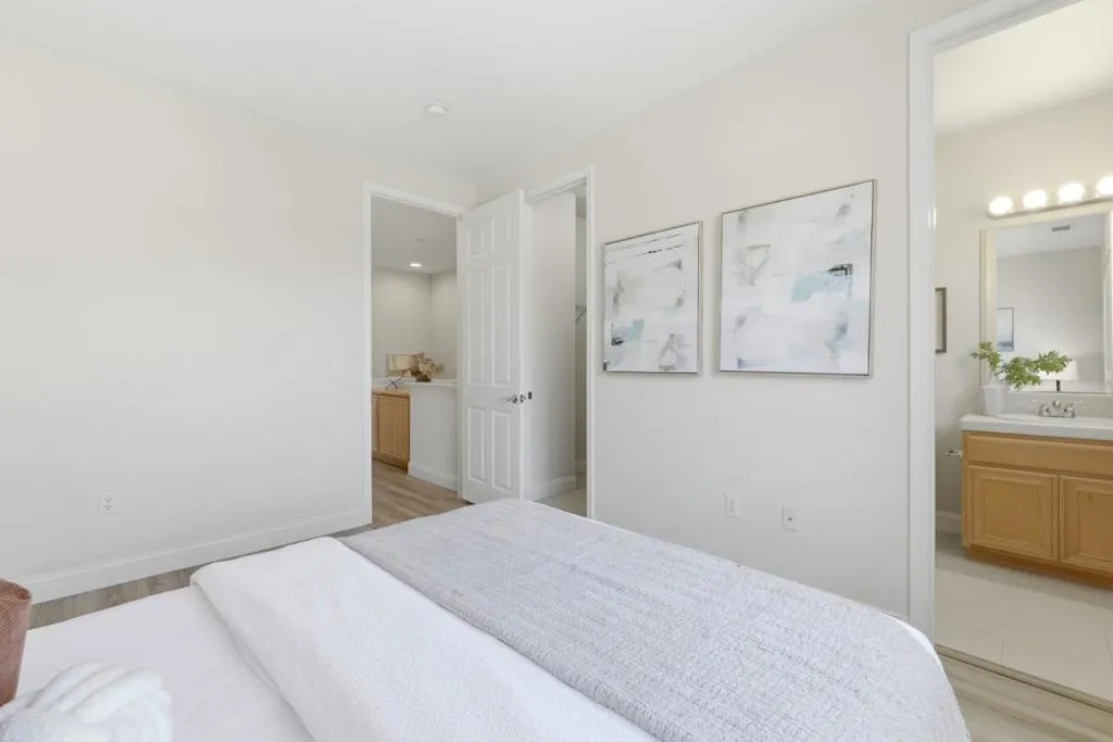 Bright and modern 2-bedroom, 2.5-bath Townhome in the sought-after Verona community by Toll Brothers, tucked away in a quiet corner of Sunnyvale. With a desirable North-South orientation, the home is filled with natural light, complemented by soaring ceilings and new luxury vinyl flooring throughout. A flexible mid-level space is ideal for a home office, family room, or dining area. The upgraded kitchen features granite countertops, stainless steel appliances, a breakfast bar, and access to a private balcony, along with a separate patio for outdoor living. Upstairs offers TWO ensuite bedrooms, each with walk-in closet and full bathroom, providing both comfort and privacy. Additional highlights include central AC, a 2-car garage with a 240V outlet for EV charging, and ample storage. Ideally located near parks and greenbelts, and just a short walk to Seven Seas Park, with easy access to Highways 101 and 237 and close to major employers such as Google, Amazon, and Meta. A perfect balance of modern living, community, and location truly one to see!