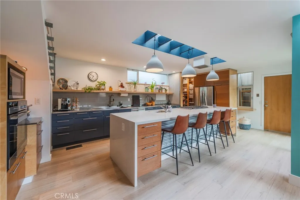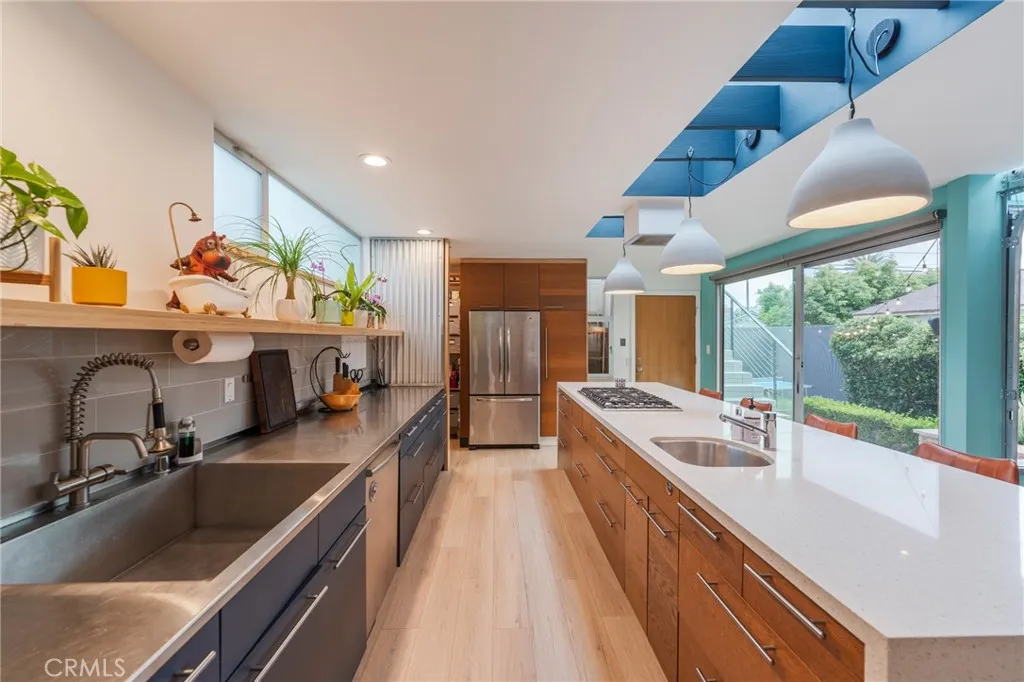 Priced to sell!! Stylishly remodeled Mid-Century Gem in Prime Belmont Park Location. Welcome to 358 Santa Ana Ave, a thoughtfully reimagined 3 bedrooms and 3 baths Mid-century modern home located on a quiet palm tree-lined street in one of Long Beach's most coveted neighborhoods. Just a short stroll from Lowell Elementary, Rogers Middle School, the beach, and the vibrant shops and restaurants of 2nd Street, this residence offers the ultimate in lifestyle and convenience. This entertainer's paradise boasts over 900 sqft of private rooftop deck complete with a bar, grill, dumbwaiter, and skylights that cleverly doubles as coffee tables. Indoors, expansive windows and doors invite the California sunshine in, creating a seamless indoor-outdoor living experience. The remodeled interior features new flooring, updated baths, and a refreshed kitchen perfect for family meals or entertaining guests. The spacious layout includes a downstairs bedroom with en-suite bath-ideal for guests or multi generational living and a custom built home office with desk shelving and a sound resistant door for zoom calls and remote work. Enjoy peace of mind with modern upgrades including HVAC, copper plumbing and a new roof (2021). The home also offers a 2 car garage, low-water landscaping and a fully fenced yard ideal for kids or pets. Garage entry from alley and a lot more.