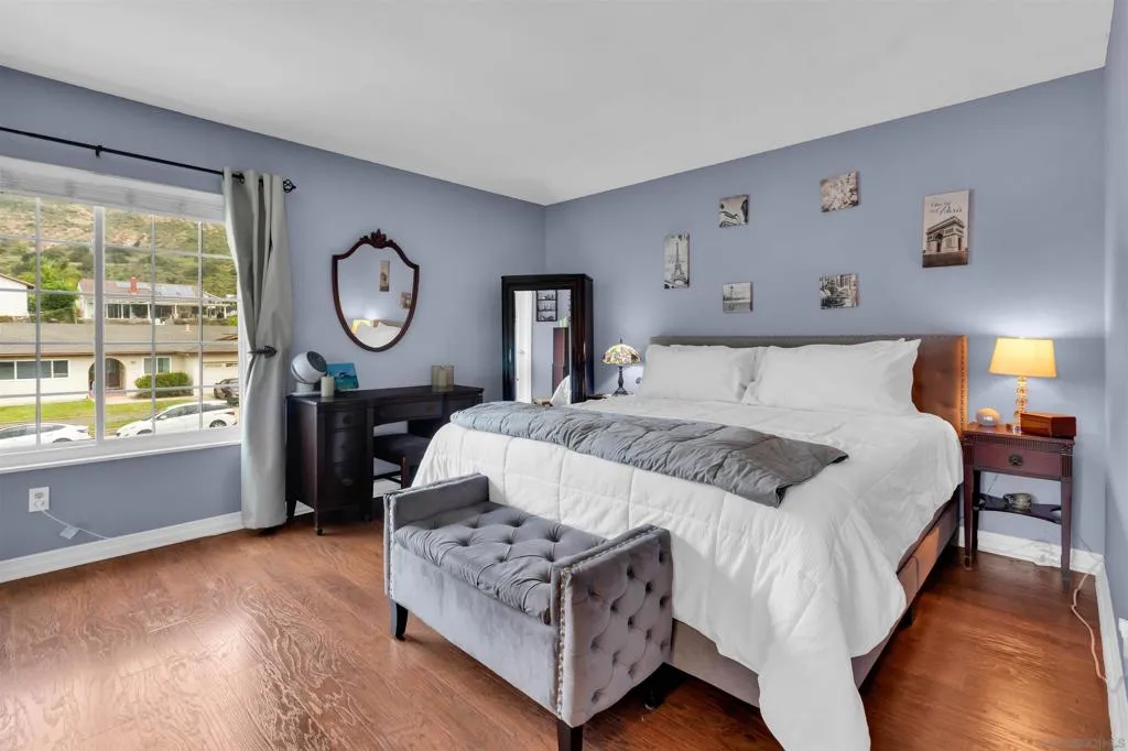 Impressive split-level home in sought-after San Carlos, offered by its second owners & enhanced with FULLY OWNED solar. Designed for modern living, the open-concept floor plan showcases a beautifully upgraded kitchen featuring an expansive island with bar seating, abundant custom cabinetry, striking quartzite countertops, & a rare, restored O’Keefe & Merritt stove. Spacious dining area perfect for entertaining, with room to accommodate an oversized table. The inviting living room with powder room is anchored by a fireplace & opens seamlessly to an outdoor retreat. Offering 4 bedrooms & 2.5 baths, the home provides flexible spaces for refined living, work, & guests. The spacious primary suite enjoys serene views of Cowles Mountain, a walk-in closet, and a spa-inspired ensuite with dual vanities & a custom tile walk-in shower with bench. Thoughtful upgrades include luxury vinyl plank, laminate & designer tile flooring, dual-pane windows, beautifully remodeled bathrooms, and custom window treatments throughout. Lush yet low-maintenance grounds are accented by mature plumeria trees. The fully fenced & private backyard features a resurfaced pool with updated tile & coping, newer PVC plumbing & equipment, and a separate hot tub. A covered lounge with ceiling fans & mounted TV creates a resort-style setting for effortless indoor-outdoor living. The two-car garage offers direct entry into the home and provides ample storage space. Ideally located near Cowles Mountain, Mission Trails Regional Park, dining, shopping, freeways and top-rated schools. Impressive split-level home in sought-after San Carlos, offered by its second owners and enhanced with FULLY OWNED solar. Designed for modern living, the open-concept floor plan showcases a beautifully upgraded kitchen featuring an expansive island with bar seating, abundant custom cabinetry, striking quartzite countertops, and a rare, restored O’Keefe & Merritt stove. Spacious dining area perfect for entertaining, with room to accommodate an oversized table. The inviting living room with powder room is anchored by a fireplace & opens seamlessly to a private outdoor retreat. Offering 4 bedrooms and 2.5 baths, the home provides flexible spaces for refined living, work, and guests. The spacious primary suite enjoys serene views of Cowles Mountain, a walk-in closet, and a spa-inspired ensuite with dual vanities & a custom tile walk-in shower with bench. Thoughtful upgrades include luxury vinyl plank, laminate & designer tile flooring, dual-pane windows, beautifully remodeled bathrooms, and custom window treatments throughout. Lush yet low-maintenance grounds are accented by mature plumeria trees. The fully fenced & private backyard is a true sanctuary, featuring a resurfaced pool with updated tile & coping, newer PVC plumbing & equipment, and a separate hot tub. A covered lounge with ceiling fans & mounted TV creates a resort-style setting for effortless indoor-outdoor living. The two-car garage offers direct entry into the home and provides ample storage space. Ideally located near Cowles Mountain, Mission Trails Regional Park, dining, shopping, freeways & top-rated schools.