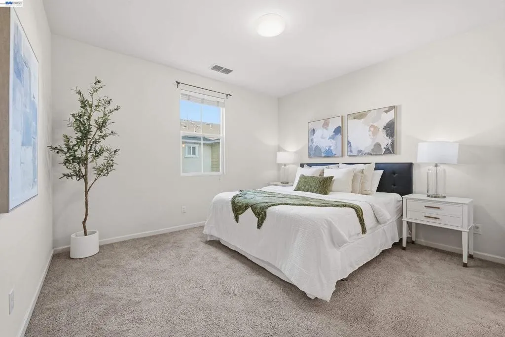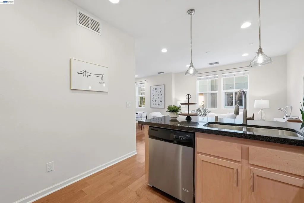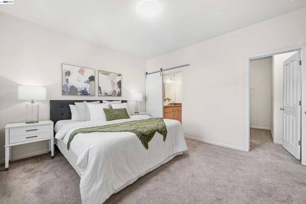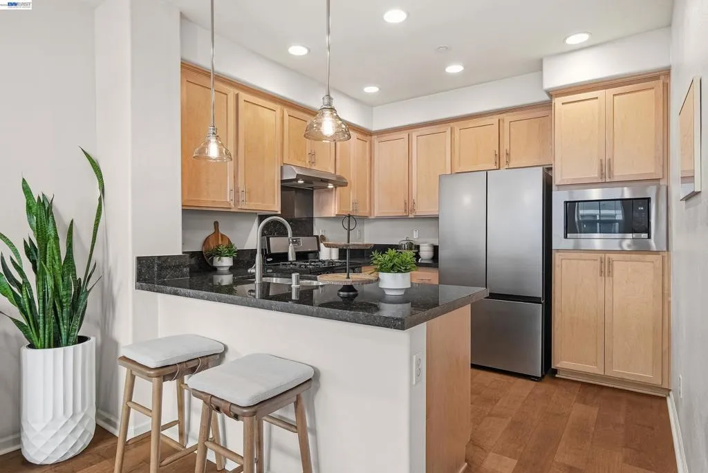 Welcome to this bright and stylish corner-unit townhome in the heart of Silicon Valley, offering a perfect blend of comfort and convenience. This well-designed 2-bedroom, 2.5-bath home features a functional multi-level layout with an open-concept living and dining area, ideal for everyday living and entertaining. The main living level includes a spacious living room, dining area, and a well-appointed kitchen with stainless steel appliances, granite countertops, and a breakfast bar. A half bath and private balcony complete the space, filled with abundant natural light. Upstairs, both bedrooms are generously sized en suites with private bathrooms, offering excellent privacy and flexibility. Additional highlights include a detached tandem 2-car garage and desirable corner-unit location for enhanced light and openness. Enjoy resort-style community amenities including walking trails, pool, fitness center, clubhouse, playground, and tennis courts. Ideally located near BART, Great Mall, and 99 Ranch Market, with easy access to Highways 237, 880, and 680, and top-rated Milpitas schools.