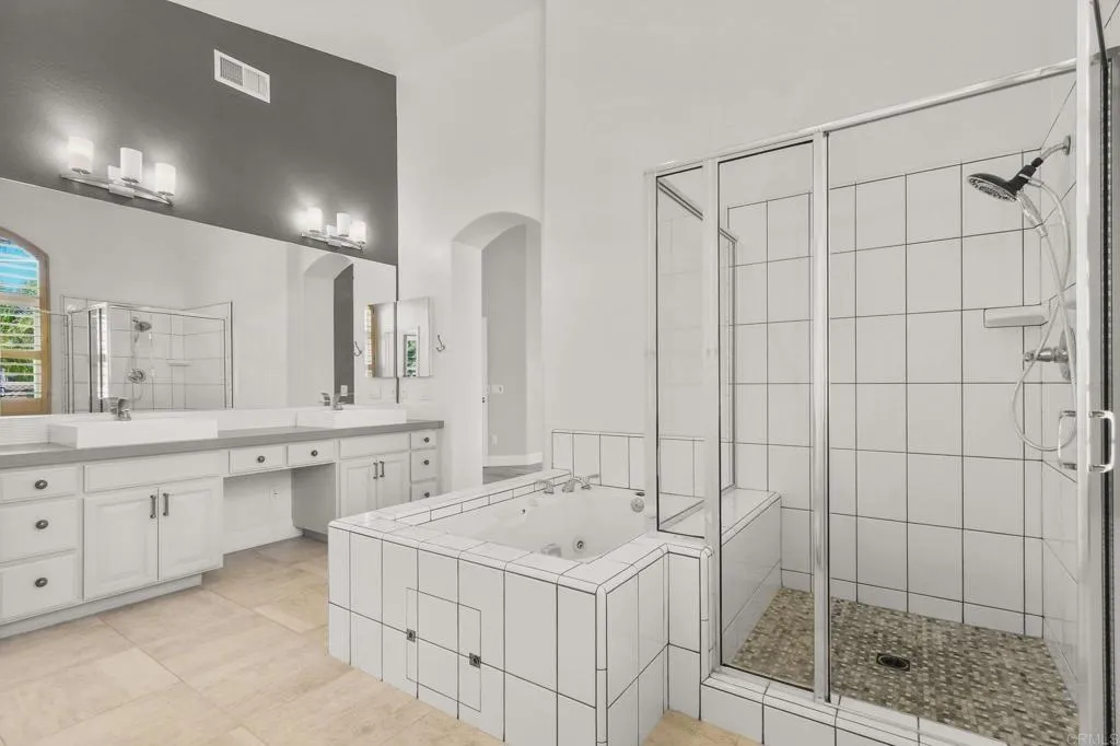 Welcome to Rancho San Pasqual, one of North County San Diego’s most sought-after gated communities, nestled in the scenic foothills of Escondido and surrounding the beautiful Dos Osos Golf Course. This exceptional 5 bedroom, 4 bathroom home offers 3,444 square feet of thoughtfully designed living space on a large, private lot at the end of a quiet cul-de-sac. Step inside to soaring 19 foot ceilings in the living room, where natural light pours in and a cozy fireplace creates an inviting space to relax or entertain. The spacious, well-appointed kitchen has a roomy walk-in pantry and space for a large dining table. The adjacent, open-concept great room features a fireplace and flows seamlessly into the backyard oasis, perfect for indoor-outdoor living. A full bedroom and bathroom on the main floor provide ideal flexibility for guests or multigenerational living. Upstairs, you’ll find 4 spacious bedrooms, including a luxurious primary suite complete with its own fireplace, private balcony overlooking the pool and firepit, a spa-like bathroom with soaking tub, and a retreat space ideal for a home office or lounge. One secondary bedroom features its own ensuite bath, offering a second primary suite option, while two additional bedrooms share a well-appointed bathroom. The backyard is truly a showstopper, designed for both relaxation and entertaining, with a sparkling pool and spa featuring a waterfall and a lawn, fruit trees, and a built-in firepit area for gathering under the stars. Additional highlights include 40 paid-for solar panels for energy efficiency and a 3-car attached garage. Residents of Rancho San Pasqual enjoy access to exceptional community amenities, including a large pool, sport court, playground, and picnic area, all within a secure gated setting. HOA dues are $215 per month. Enjoy the perfect blend of privacy, luxury, and community in this premier location, just minutes from hiking trails and easy access to I-15 for commuting or coastal escapes. The highly regarded K-8 San Pasqual Union school is just outside the community gates.