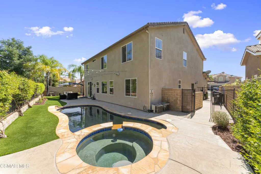 Welcome to this well-appointed 4 bedroom, 2.5 bathroom home offering the perfect blend of comfort, functionality, and outdoor living. The expansive open floor plan features a large living area with a cozy fireplace, ideal for both everyday living and entertaining. The kitchen is designed for gathering, complete with ample cabinetry, generous counter space, and a large island with bar seating that opens seamlessly to the main living areas.Upstairs and downstairs living spaces provide flexibility for families, guests, or a home office setup. Natural light fills the home, highlighting the spacious layout and inviting atmosphere throughout.Step outside to your private backyard retreat featuring a pool and spa, perfect for relaxing or hosting. The surrounding patio and landscaped areas create an ideal setting for outdoor dining and entertaining.Additional highlights include multiple living areas, spacious bedrooms, and a functional layout that suits a variety of lifestyles. Conveniently located near shopping, dining, and local amenities.