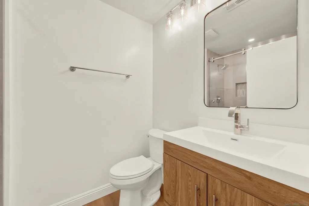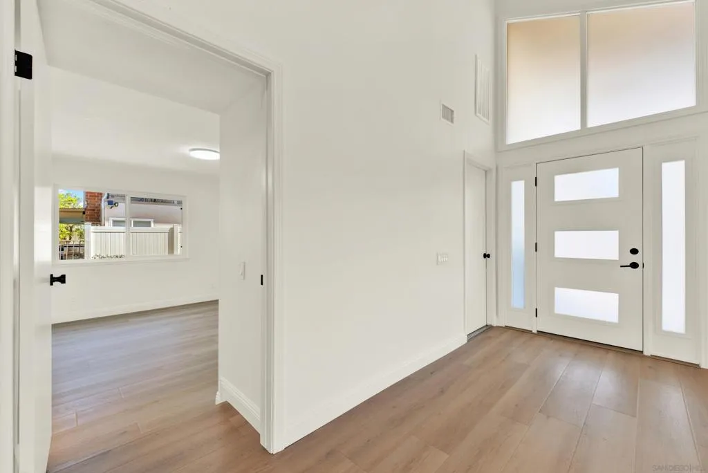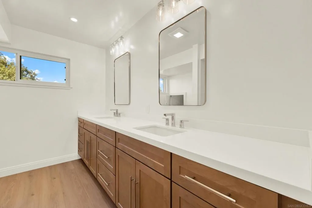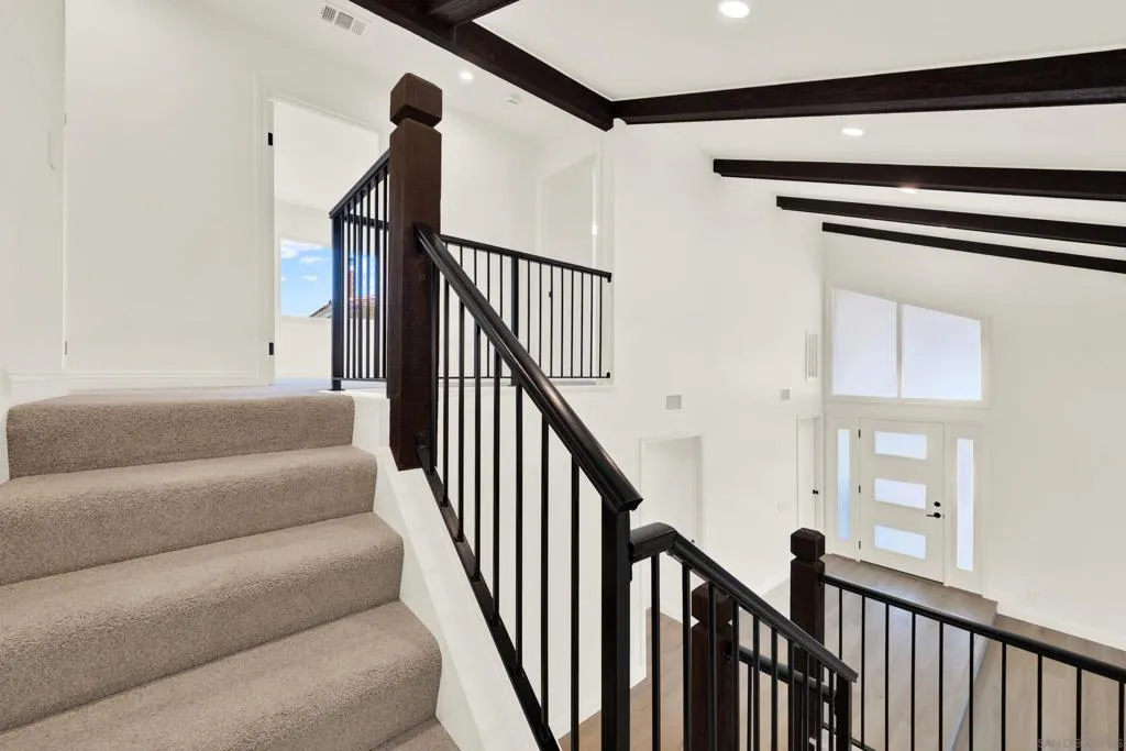 Tucked into the coveted hills of Gatewood, this completely remodeled, turn-key 5-bedroom, 3-bath residence blends elevated design with everyday functionality. The thoughtfully designed floorplan offers both a private dining room for intimate gatherings and a spacious family room that seamlessly connects to the heart of the home. Ideal for flexible living, the home includes both a downstairs bedroom and a highly desirable primary suite on the main level—each positioned to take in serene, expansive vistas. From the moment you enter, you’re greeted by an inviting living space enhanced by wood-style beam accents that add warmth and architectural character throughout the downstairs. Additional upgrades include a finished garage with epoxy flooring, a dedicated 125A sub panel, exterior electrical amp, and a full sprinkler system. Every detail has been carefully curated, offering a move-in-ready opportunity in one of Rancho Bernardo’s most sought-after neighborhoods. This is the kind of home that doesn’t just check boxes—it quietly exceeds them.