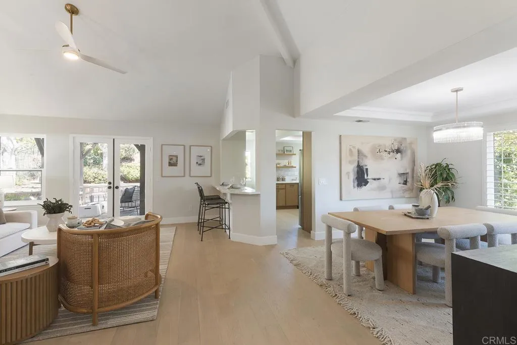 Welcome to 15027 Caminito Ladera. This beautifully renovated single story home in Las Vistas, one of North County’s most sought-after communities is just minutes from the beaches, shops and some of Del Mar's best restaurants. Offering 2012 square feet of living space, the fully renovated 3 bedroom, 2.5 bath home opens with vaulted ceilings and plenty of natural light. The layout keeps the kitchen, dining and living areas connected and easy to move through. Out back, a private yard with a covered gazebo creates a natural extension of the home, great for relaxing and spending time outside. The community includes a pool, tennis and pickleball, with a golf course just across the way. All just minuets from the coastline!