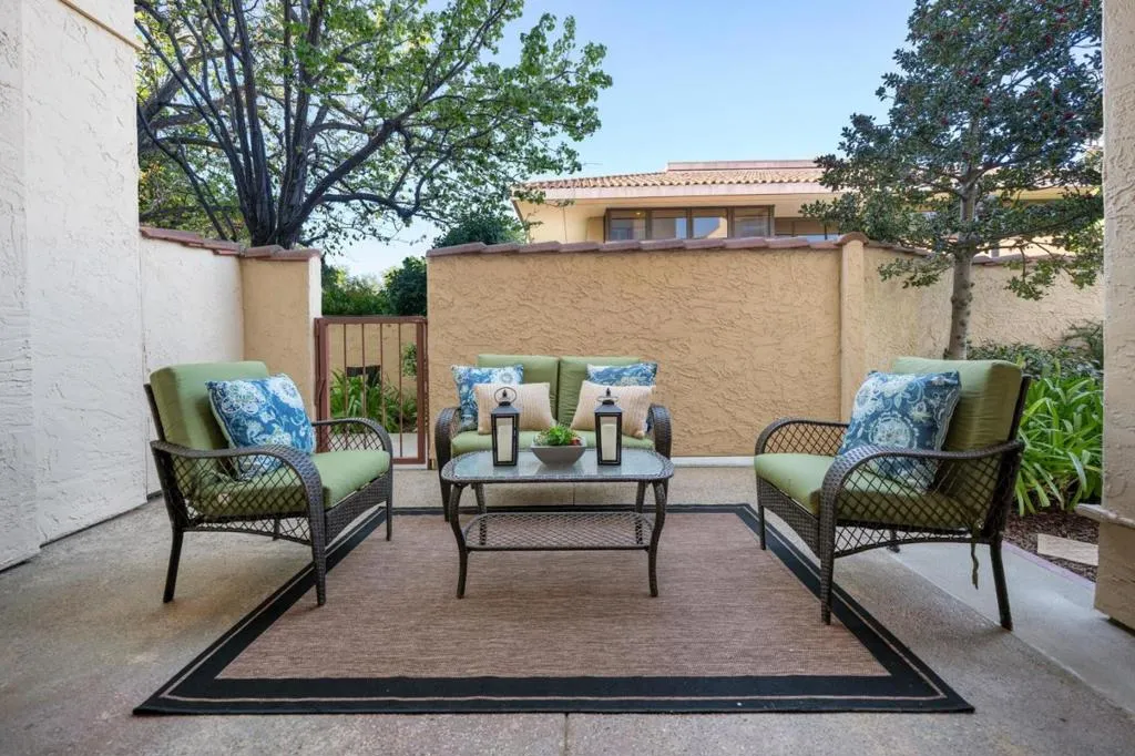 Finally, a home that does not ask you to compromise. Designed to live like a single-family home, this beautifully remodeled, first-floor corner residence offers space, privacy, and seamless indoor-outdoor living without the added upkeep. With approximately 1,002 sq ft of private outdoor space, multiple sliding glass doors create a seamless connection between indoor and outdoor living. Located just steps from Central Park and vibrant downtown San Mateo, you will enjoy a truly walkable lifestyle with coffee, dining, fitness, and everyday essentials close at hand, along with easy walk or bike access to Caltrain. Living here gives you time back, with nearby employers and the ability to leave the car behind. Inside, the home features wide-plank engineered oak floors, a spacious dine-in kitchen with island and bar seating, stainless steel appliances, custom window coverings, and a cozy fireplace anchoring the living space. The primary suite offers generous closets and a well-appointed bath, while the second bedroom is ideal for guests or a home office. In-unit laundry, two-car side-by-side parking, and a private storage room add to everyday convenience. Elevator access just outside your door and direct gated access from your patio complete the experience. Homes like this are rare.