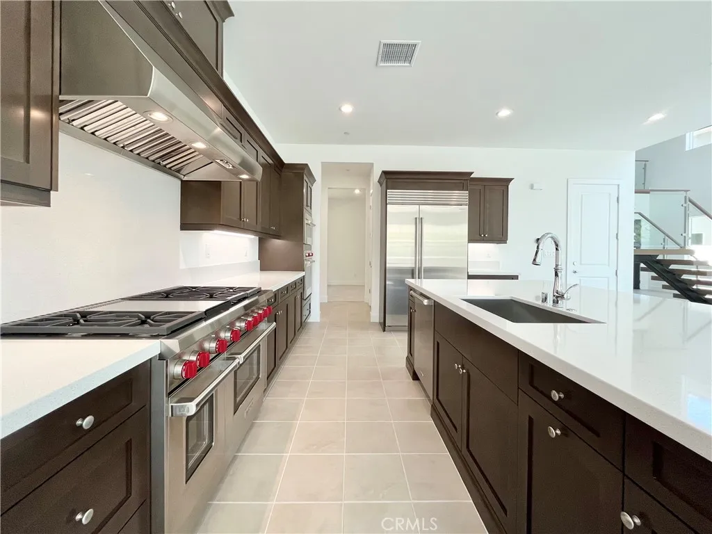 Welcome to this beautiful home in the highly desirable FivePoint Valencia community. This thoughtfully designed residence features a bright and open floor plan ideal for modern living, with brand-new flooring throughout the first floor. The spacious great room flows seamlessly into the gourmet kitchen, complete with a large center island, ample cabinetry, and quality finishes—perfect for everyday living and entertaining. The home offers 5 bedrooms, all with en-suite bathrooms, including one bedroom suite conveniently located on the first floor. Upstairs features four additional bedroom suites, providing comfort and privacy for everyone. The main level also includes an additional powder room for guests. Enjoy a private backyard perfect for outdoor relaxation or gatherings. Residents benefit from excellent community amenities including pools, parks, and scenic walking trails, all conveniently located near shopping, dining, and major freeways.