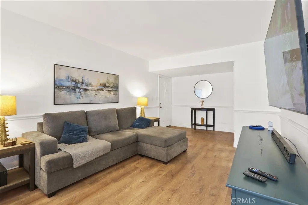 Welcome to one of the best-kept condo communities in La Habra! This spacious ground-level 2-bedroom home offers the perfect blend of thoughtful upgrades, modern comfort, and an unbeatable central location. Recently updated with no expense spared, this turnkey residence features engineered flooring throughout, dual-pane windows, a beautifully remodeled bathroom, upgraded plumbing, and newer heating and air conditioning—providing both style and long-term peace of mind. The bright, modern kitchen showcases sleek quartz countertops, ample cabinetry, and a clean, functional layout that opens seamlessly to the living area. Step just outside to your oversized private patio, creating an ideal indoor-outdoor flow—perfect for entertaining guests or enjoying quiet evenings at home. Both bedrooms are generously sized and feature large walk-in closets, offering exceptional storage. The primary bedroom stands out with its expansive layout, complete with a built-in desk or vanity area and additional custom cabinetry—ideal for working from home or creating your own private retreat. Added home automation features can be easily integrated and controlled from your phone for everyday convenience. Enjoy access to community amenities including a pool and BBQ area, all just moments away. For outdoor enthusiasts, you’re within close proximity to La Habra's Vin Scully Centennial Park, featuring a dog park, basketball courts, amphitheater, exercise equipment, and playgrounds. This prime location offers easy access to shopping, dining, and entertainment—whether you prefer a short walk or quick drive. The home also includes covered parking with rare double storage, adding even more functionality. A true turnkey opportunity combining comfort, style, and convenience—homes like this don’t last. Schedule your showing today!