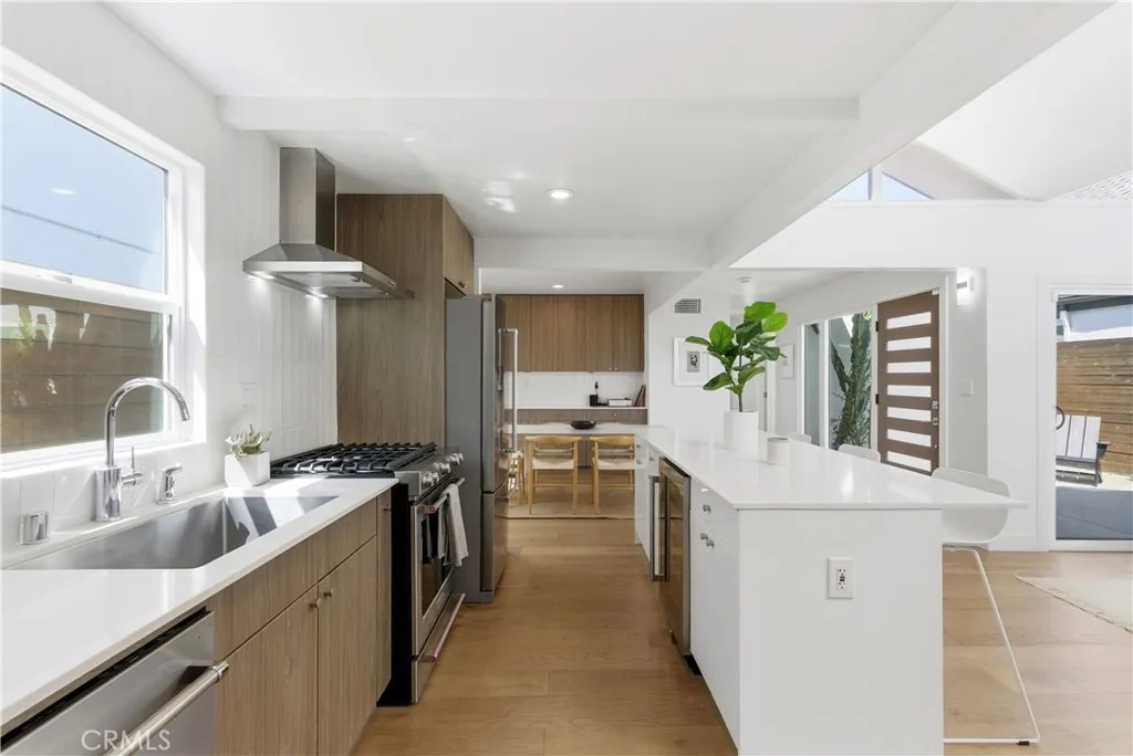 Welcome to 258 Walnut Street—an effortlessly stylish coastal retreat in the coveted Newport Shores community, just two blocks from the beach and some of Newport’s most sought-after surf. This beautifully reimagined 3-bedroom, 2-bathroom home offers approximately 1,348 square feet of curated living space, blending a refined mid-century modern aesthetic with relaxed coastal elegance. Clean lines, warm textures, and an abundance of natural light create a serene yet sophisticated atmosphere throughout. The open-concept design is ideal for both everyday living and entertaining, featuring wide-plank white oak flooring, a statement fireplace, and seamless indoor-outdoor flow. At the heart of the home, the open concept kitchen which showcases sleek quartz countertops, custom cabinetry, and stainless steel appliances—perfectly suited for everything from casual mornings to sunset gatherings after a day at the beach. The primary suite is a private sanctuary, complete with dual vanities and a spacious walk-in closet, while two additional bedrooms offer flexibility for guests, a home office, or a growing family. Additional highlights include air conditioning, in-home laundry, and an attached two-car garage. Experience the ultimate Newport Beach lifestyle with exclusive access to the Newport Shores Community Association amenities, including a resort-style pool, clubhouse, tennis and pickleball courts, basketball, volleyball, playground, and outdoor barbecue areas. Ideally located near award-winning public schools, as well as premier dining, shopping, and coastal recreation, this home offers an exceptional blend of convenience and lifestyle. Whether you’re catching early morning waves, biking along the coast, or enjoying sunset strolls along the sand, this home places you at the center of it all—offering a rare opportunity to experience the quintessential Southern California coastal lifestyle with timeless mid-century modern appeal.