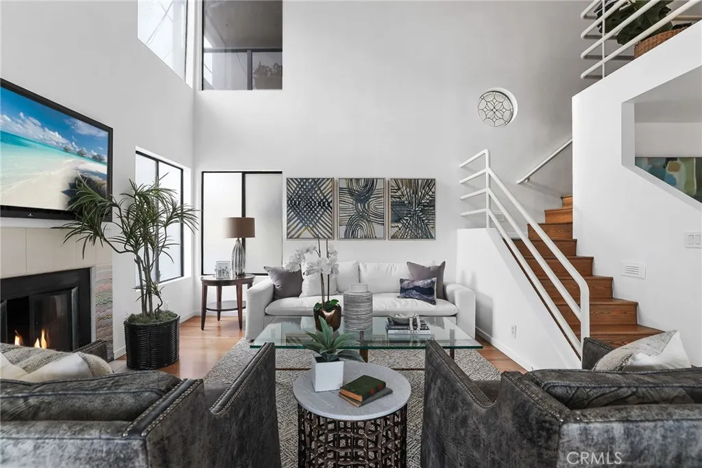 Located just one property from the sand in coveted Alamitos Bay, this rare beachside duplex blends classic mid-century modern design with the relaxed coastal lifestyle that makes this Long Beach enclave so desirable. With clean architectural lines, soaring ceilings, and walls of windows that invite in natural light and ocean breezes, the property offers a unique opportunity for both homeowners and investors. The front residence features two spacious bedrooms and two bathrooms, highlighted by an open living area with a fireplace, dramatic high ceilings, and expansive windows that create a bright and airy atmosphere. A private balcony extends the living space outdoors, perfect for enjoying the coastal air. The second residence offers a versatile one-bedroom plus loft layout with two bathrooms, also showcasing vaulted ceilings, abundant natural light, a fireplace in the living room, and its own balcony retreat. The loft provides additional flexible space ideal for guests, a home office, or creative studio. Both units capture the essence of beach living with indoor-outdoor flow and thoughtful design elements that reflect the building’s timeless mid-century character. A staircase leads to the rooftop access where sweeping views reward you with stunning panoramas of Alamitos Bay, peekaboo ocean views toward the Pacific, and the surrounding coastal neighborhood—an ideal setting for sunset gatherings or quiet mornings by the sea. Parking is well accommodated with carport parking for the front unit, while the rear unit enjoys both a carport and a single-car garage. On the ground level, a separate storage area includes an additional bathroom, offering convenient space for beach gear, hobbies, or future possibilities. Located just steps from the sand, kayaks, paddle boards, and the vibrant waterfront lifestyle of Alamitos Bay, this exceptional duplex delivers the perfect blend of architectural style, location, and versatility in one of Long Beach’s most sought-after coastal communities.