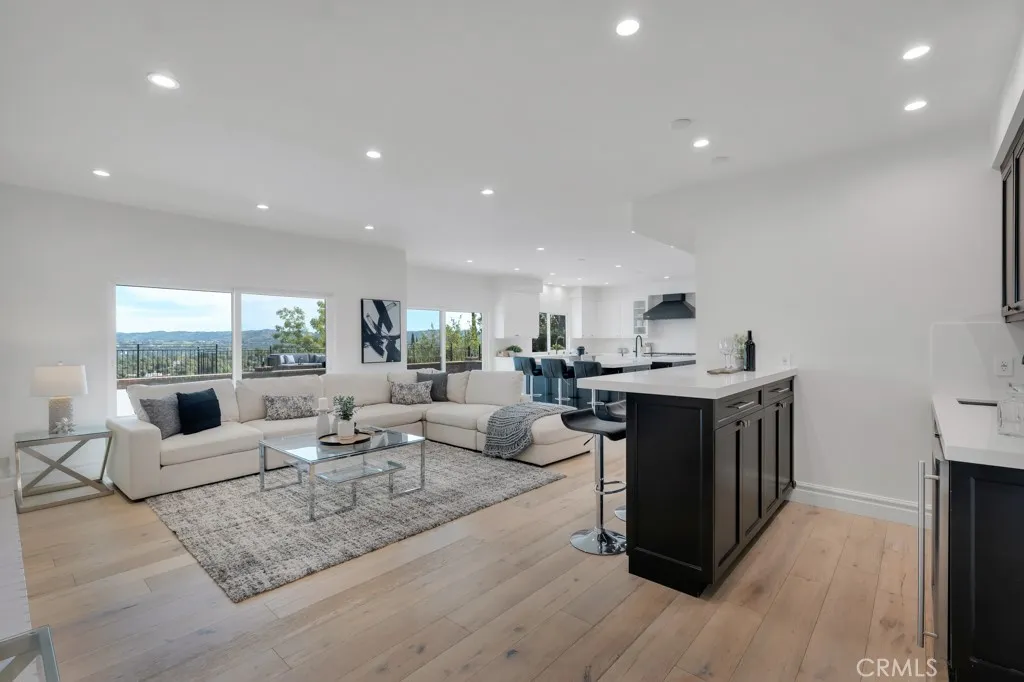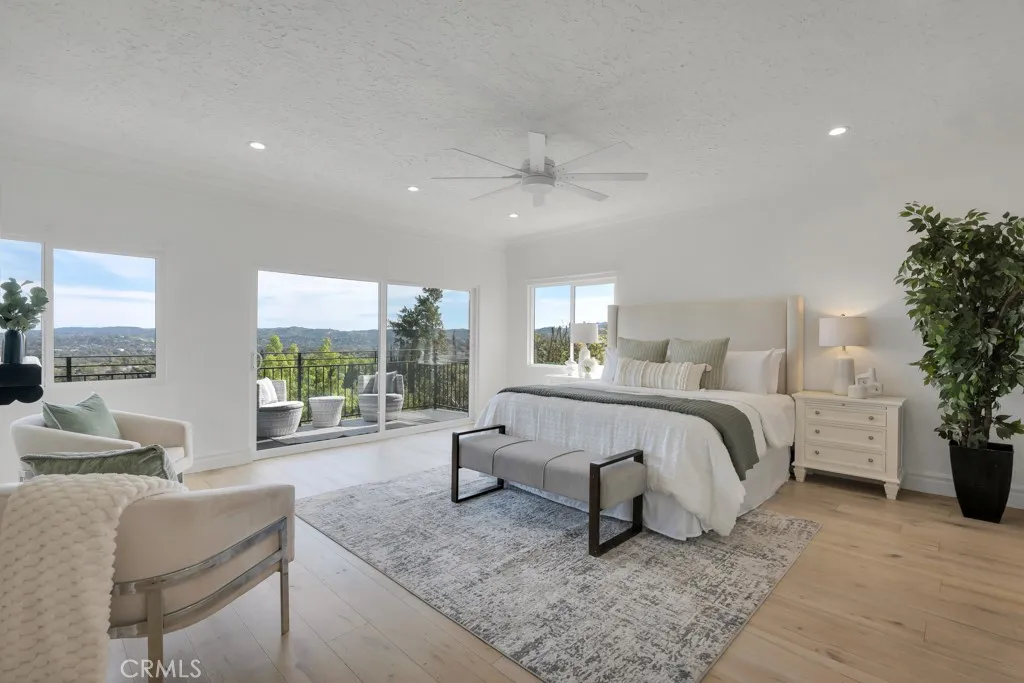 Perched above the San Fernando Valley on one of the most prestigious streets in Woodland Hills, this majestic five-bedroom, four-bathroom estate offers 4,407 square feet of luxurious living space, ideal for high-end family living. Enjoy breathtaking, panoramic “jetliner” views of the entire valley from virtually every area of the property. Situated on an expansive 13,057-square-foot lot, the residence welcomes you with architectural excellence, featuring soaring vaulted wood-beamed ceilings, crisp lines, and grand open living areas thoughtfully designed to frame the stunning vistas through massive windows. The gourmet chef’s kitchen is a true centerpiece, showcasing distinctive dual islands and high-end finishes—perfect for both large-scale entertaining and everyday living. The oversized primary suite serves as a private sanctuary, complete with its own viewing balcony that offers a front-row seat to dazzling city lights and spectacular sunrises and sunsets. Step outside to the ultimate California backyard, where a sparkling pool and spa are complemented by a built-in BBQ station and a massive viewing deck with unobstructed 180-degree views. Whether hosting grand gatherings or enjoying the tranquility of the lush grounds, this rare property offers unparalleled scale, privacy, and prestige. Located within a top-tier school district and just minutes from world-class shopping and dining at The Commons at Calabasas and The Village, this legacy estate presents a unique opportunity to own one of the most coveted views in the Valley