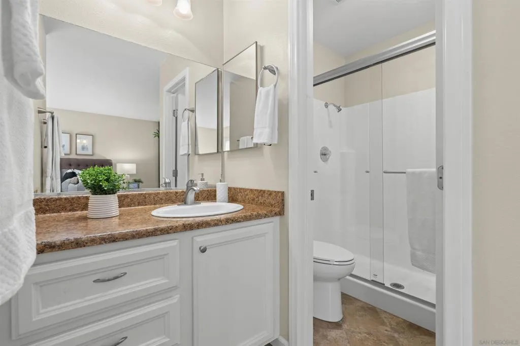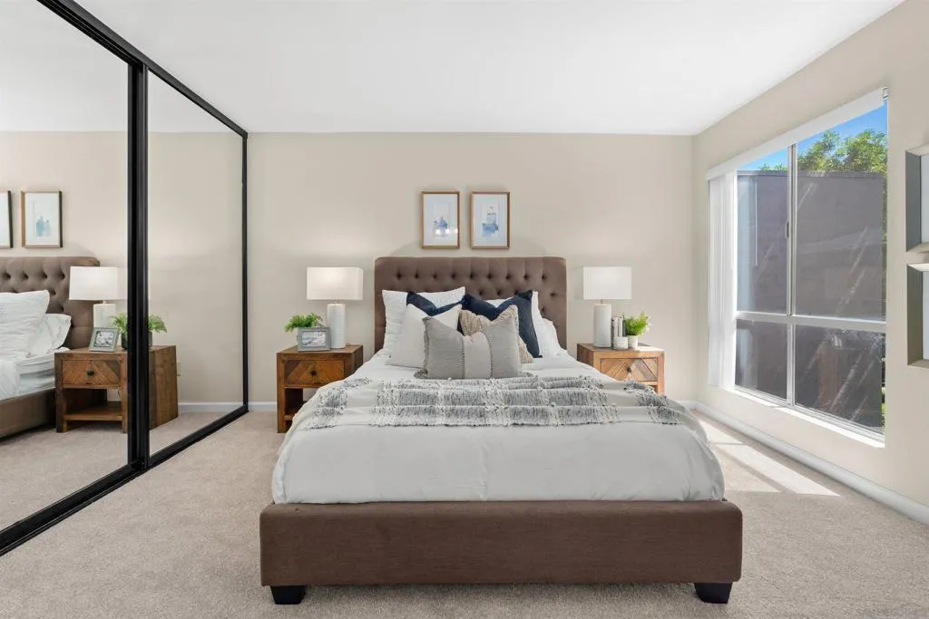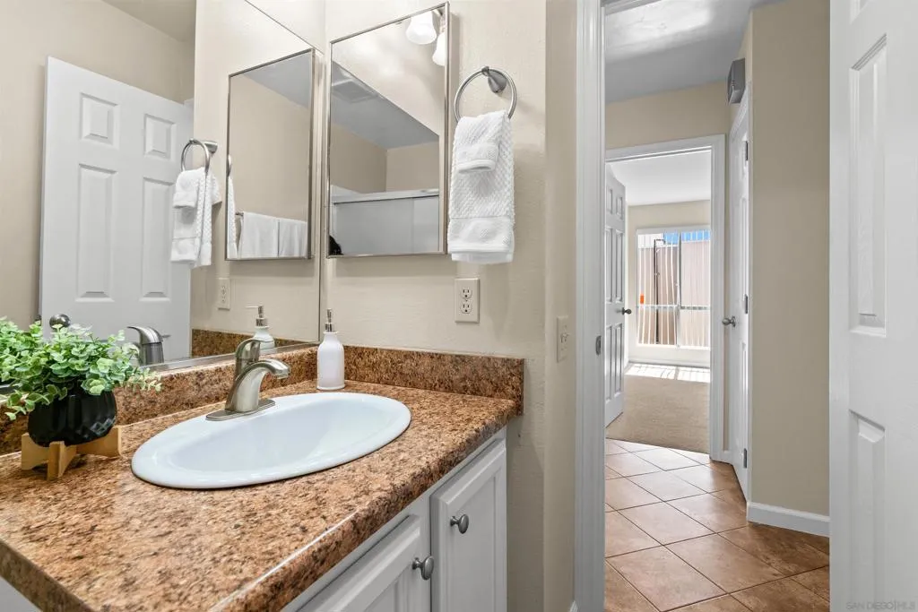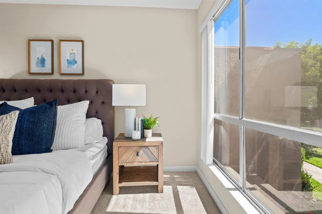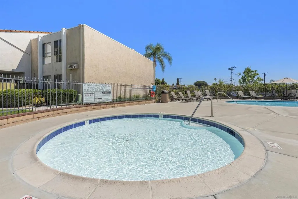 Tons of natural light stram into this terrific top floor Serra Mesa condo. The unit features vaulted ceilings in the living room, tons of storage w/ 3 interior hall closets & a 4th on the balcony, a spacious master bedroom w/ a huge closet & a nice wall AC unit for those warm Summer days. Among the many upgrades are fresh paint, new carpet, newer glass shower doors & updated light fixtures. The kitchen features an open concept & solid surface counter tops. There's even two assigned parking spots! Please see supplement for more. Welcome home! The complex amenities include a wonderful pool area complete with spa and kiddie pool, a rec room w/ a pool & ping pong table, BBQ area & a large fenced in dog run.