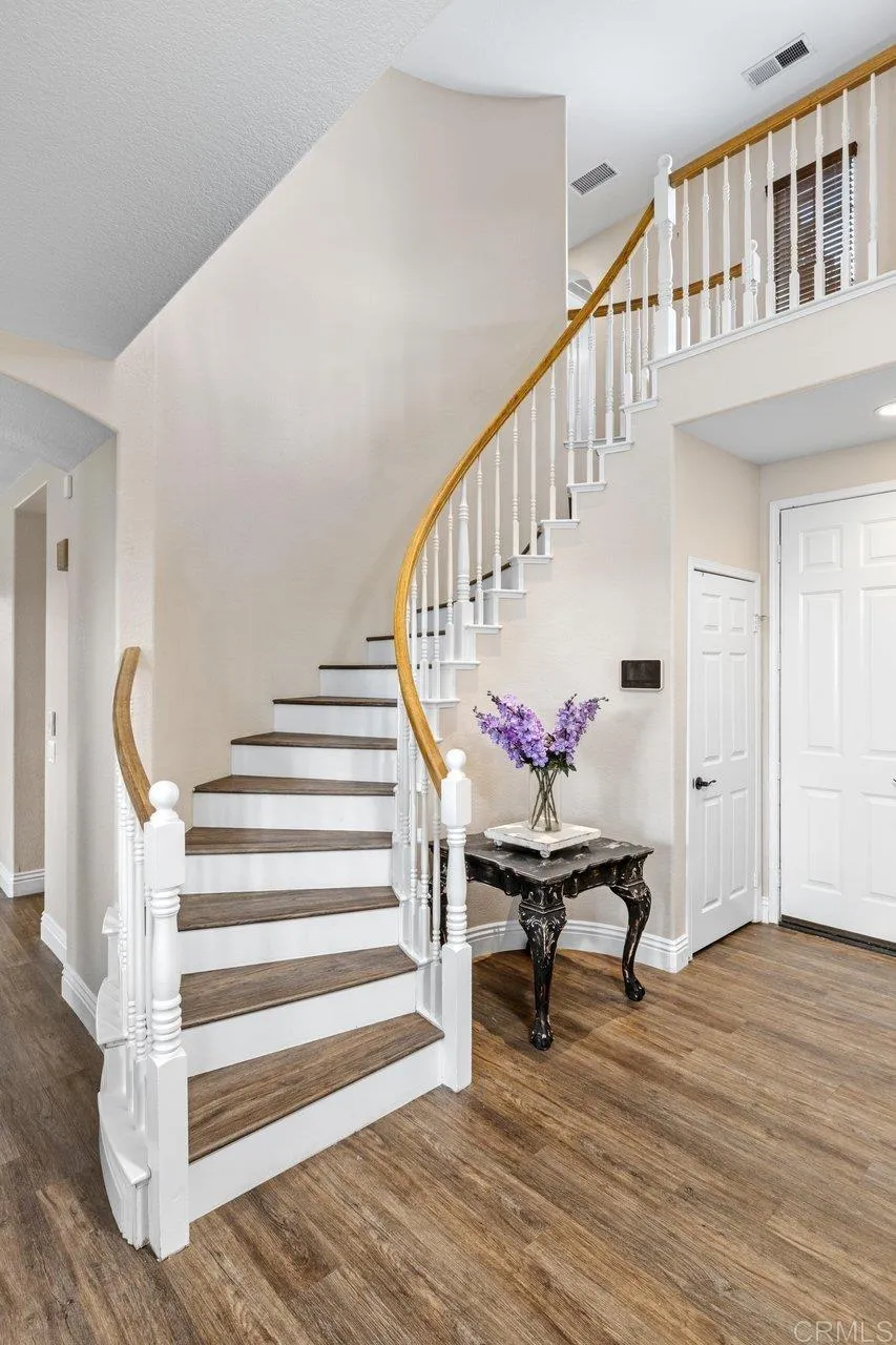 Experience daily resort-style golf course living in the heart of San Marcos! This multi-generational 3,247-sqft home sits on an oversized 12,237-sqft lot in a premier cul-de-sac, overlooking the fairways of Twin Oaks Golf Course. Light-filled open layout with remodeled kitchen featuring large center island, farmhouse apron sink, walk-in pantry, wine fridge, generous storage and eat-in area. Upstairs large primary suite offers vaulted ceilings, golf course views, custom walk-in closet, and spa-inspired bath with soaking tub and dual vanities. Owners remodeled the loft into a sizable multipurpose space—perfect as office, media room, or play area. Main level includes multiple living spaces, spiral staircase, and bonus room with full bath access, ideal for guests or a secondary living setup. Step outside to a private backyard designed for entertaining, featuring a built-in BBQ, fire pit, and peaceful golf course backdrop. Energy-efficient upgrades include owned solar, newer HVAC (2022) and a tankless water heater and water softener. Unique split garage layout with a separate single-car and two-car garage. Low $75/month HOA with community pool and cabanas conveniently located on the same street. Close to trails, parks, and Walnut Grove Park.