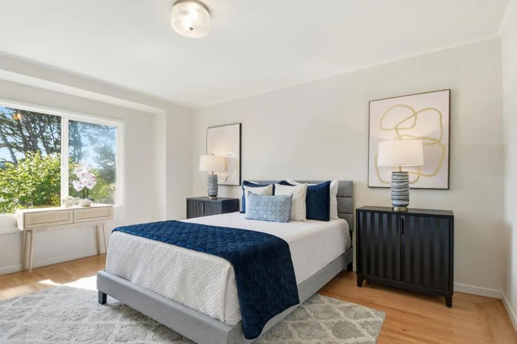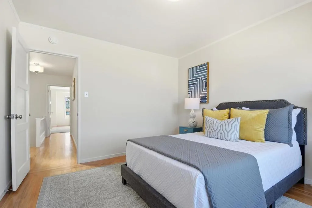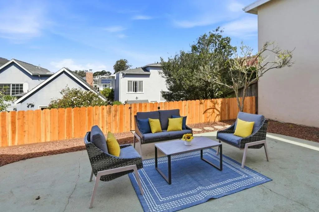 Charming, beautifully maintained home in the highly desirable Westlake neighborhood, freshly painted inside and partially outside. Flooded with natural light, the eat-in kitchen has gorgeous parquet hardwood floors and double-pane windows. Gleaming hardwood plank flooring flows throughout. New, beautiful brushed nickel ceiling lights throughout. Spacious formal dining room. The expansive living room has a cozy fireplace. The generous bedroom features a large closet, double-pane windows, and views of the lovely, fenced backyard and inviting patio. The primary bedroom features double-pane windows plus a convenient walk-in closet that connects directly to the beautifully remodeled bathroom. The bathroom is bathed in sunlight from high windows above the bathtub and updated with modern brushed nickel lighting, an elegant wood sink cabinet, a vanity table, and a new toilet. Step outside to the private backyard oasis: A new wood fence thoughtfully separates the patio from the lush garden area. The yard is fully enclosed by sturdy wood fencing for privacy and security. Oversized tandem garage offers plenty of storage or parking. Prime location, easy access to public transportation, shops, restaurants, and just a quick 15-minute drive to the beauty and excitement of San Francisco.