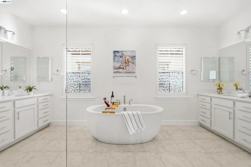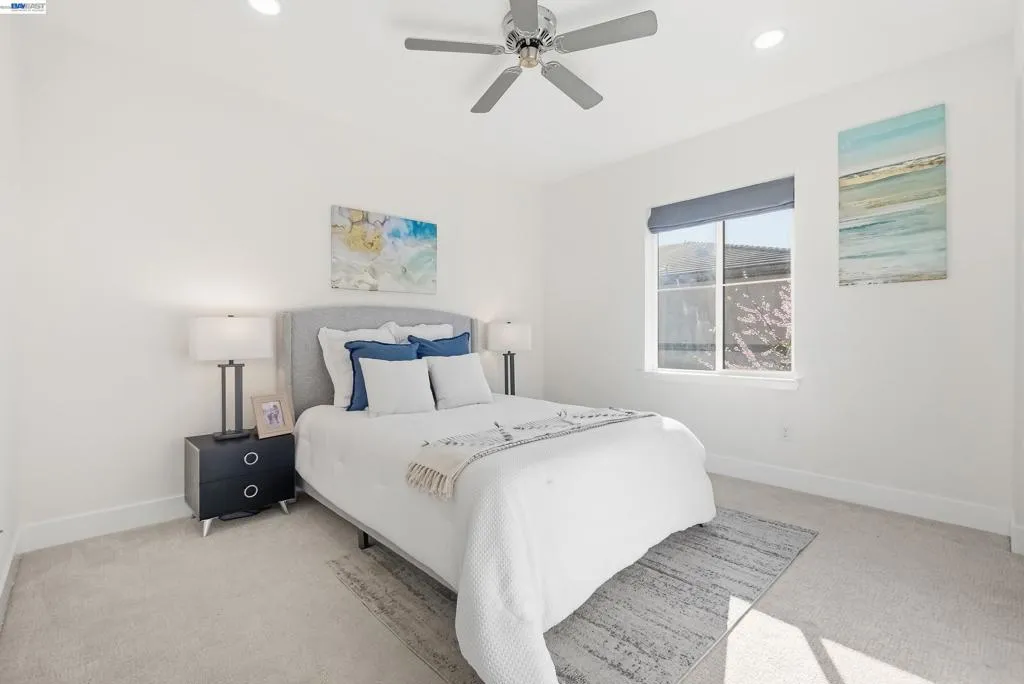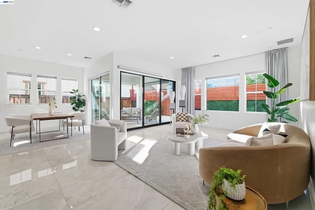 Stunning EAST-FACING modern home offering ~3,585 sq ft of elevated living with 5 beds and 5.5 baths. A rare, highly sought-after layout features a private executive office and versatile upstairs bonus room. Soaring 10-ft ceilings and walls of natural light create a bright, airy ambiance, while a dramatic 12-ft stacking glass door opens to a covered patio for seamless indoor-outdoor living. Main level en-suite bedroom ideal for guests or multigenerational living. Upstairs, retreat to a luxurious primary suite with spa inspired bath, soaking tub, dual vanities, and a walk-in closet with direct laundry access. Chef’s kitchen showcases quartz countertops, ceiling height cabinetry, and premium appliances. Designer finishes include porcelain tile flooring, recessed LED lighting, and custom built-ins. 3-car tandem garage with EV capability. Energy-efficient with owned Tesla solar, 2 zone HVAC, tankless water heater, and water softener. Prime location near parks, top schools, Pacific Commons, and major commute routes.