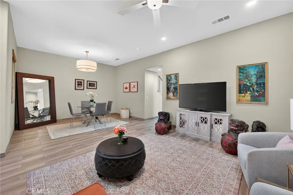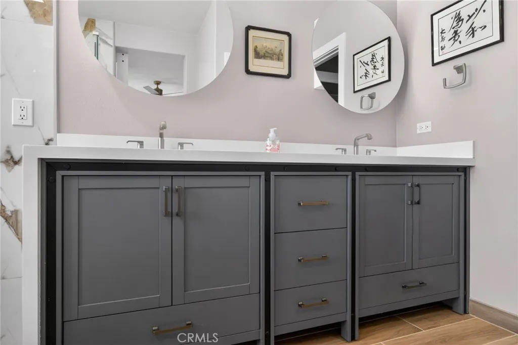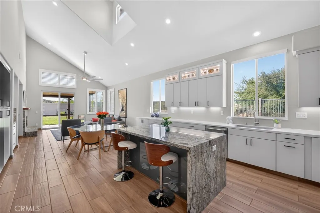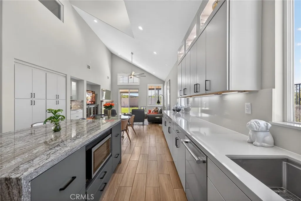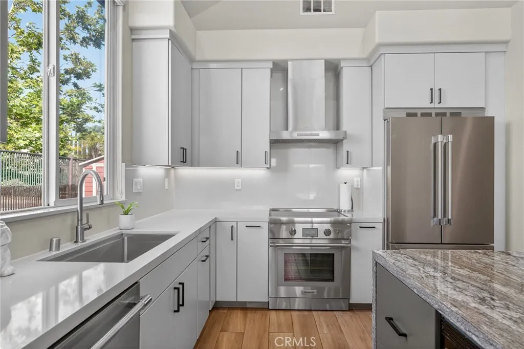 Welcome to this beautifully fully renovated home in Murrieta, where modern elegance meets comfort and thoughtful design. Featuring four spacious bedrooms and three full bathrooms, this stunning residence showcases a highly desirable layout with the primary suite conveniently located on the main floor, along with two additional bedrooms and two full baths. From the moment you enter, you’ll be captivated by the soaring ceilings, abundant natural light, and custom finishes throughout. The heart of the home is the gorgeous, modern kitchen, complete with top-of-the-line Thermador appliances, including a sleek induction cooktop, designed for both everyday living and entertaining. Upstairs, you’ll find a private retreat featuring a loft, an additional bedroom, and a full bathroom, perfect for guests or multi-generational living. The primary suite creates a spa-like experience with a soaking tub, providing a peaceful space to unwind. Every detail has been carefully curated, from the custom flooring and new doors to the elegant glass railings and designer tile accents, giving the home a sophisticated and contemporary feel. Ideally situated next to a beautiful and serene greenbelt, this home provides both privacy and a tranquil setting, making it truly special. Conveniently located near Highway 215, this home is just minutes from Costco and major shopping along Clinton Keith Road, with easy access to dining, amenities, and highly regarded schools. This is modern California living at its finest—stylish, spacious, and move-in ready.