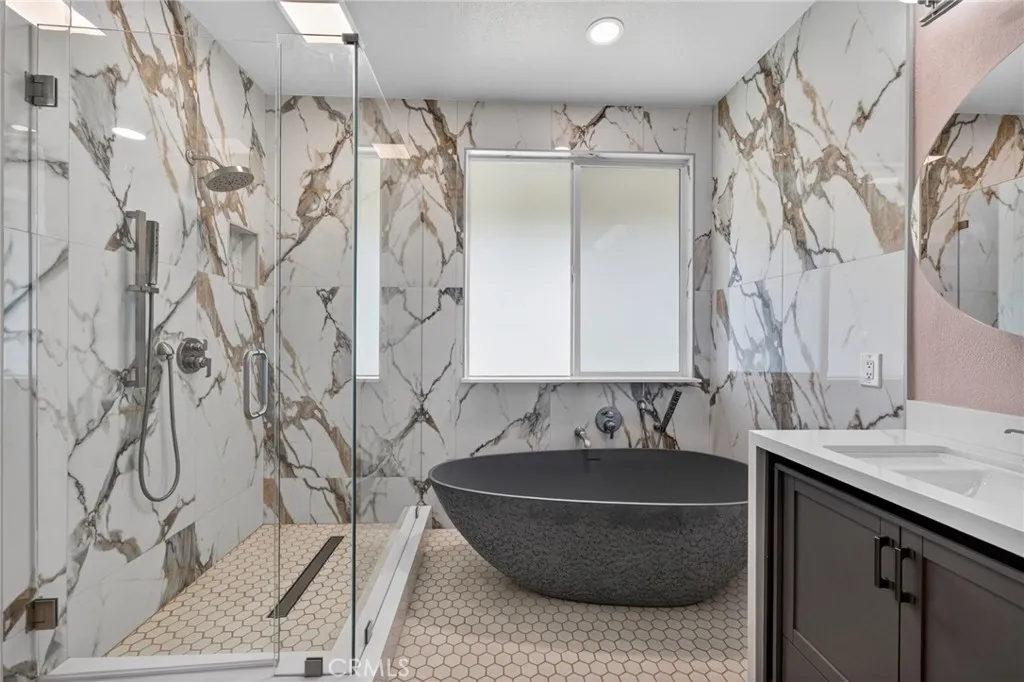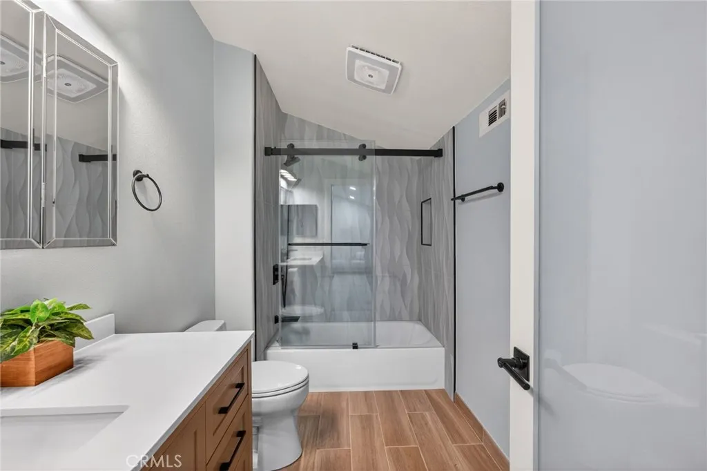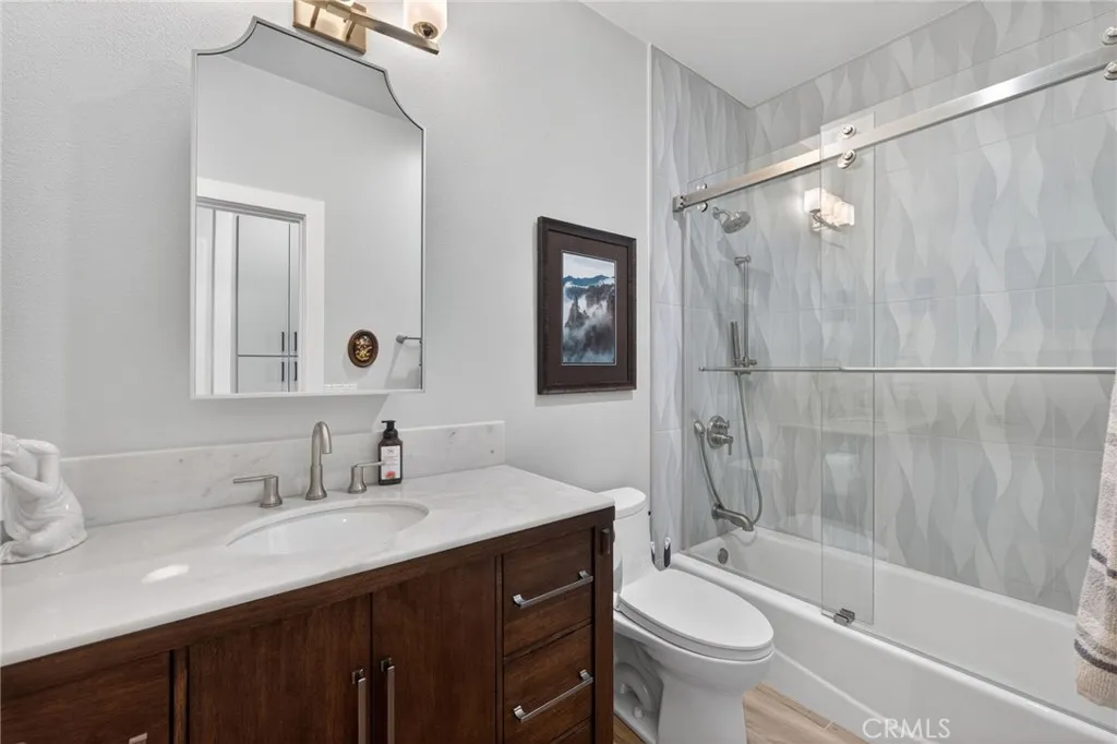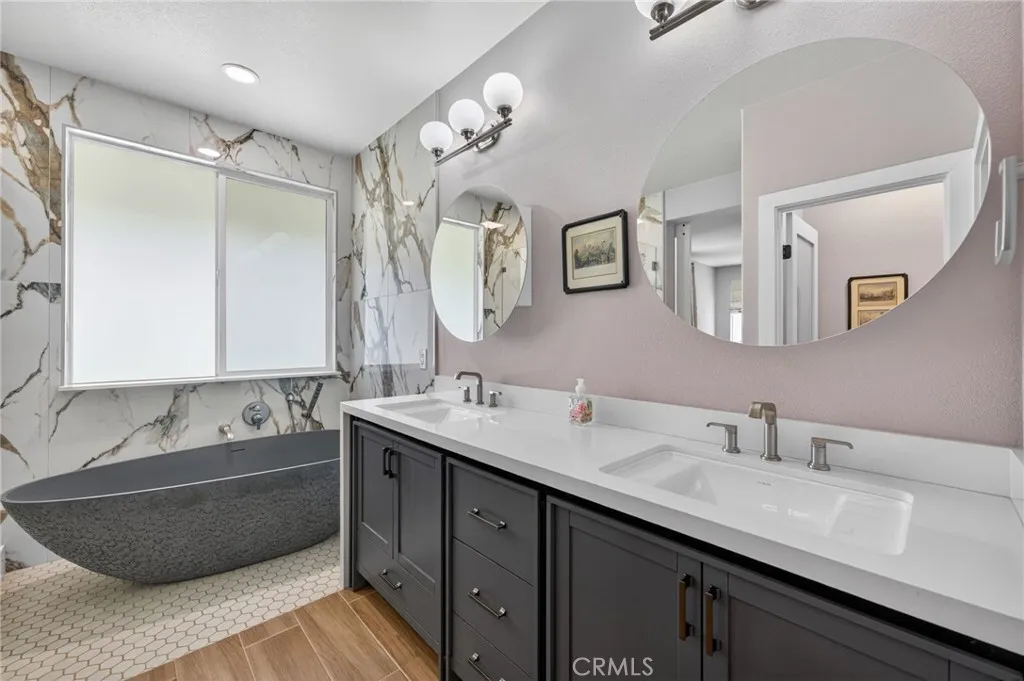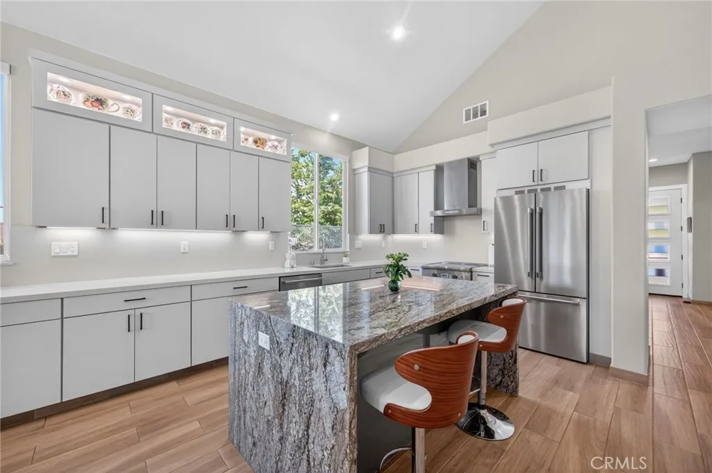 Welcome to this beautifully fully renovated home in Murrieta, where modern elegance meets comfort and thoughtful design. Featuring four spacious bedrooms and three full bathrooms, this stunning residence showcases a highly desirable layout with the primary suite conveniently located on the main floor, along with two additional bedrooms and two full baths. From the moment you enter, you’ll be captivated by the soaring ceilings, abundant natural light, and custom finishes throughout. The heart of the home is the gorgeous, modern kitchen, complete with top-of-the-line Thermador appliances, including a sleek induction cooktop, designed for both everyday living and entertaining. Upstairs, you’ll find a private retreat featuring a loft, an additional bedroom, and a full bathroom, perfect for guests or multi-generational living. The primary suite creates a spa-like experience with a soaking tub, providing a peaceful space to unwind. Every detail has been carefully curated, from the custom flooring and new doors to the elegant glass railings and designer tile accents, giving the home a sophisticated and contemporary feel. Ideally situated next to a beautiful and serene greenbelt, this home provides both privacy and a tranquil setting, making it truly special. Conveniently located near Highway 215, this home is just minutes from Costco and major shopping along Clinton Keith Road, with easy access to dining, amenities, and highly regarded schools. This is modern California living at its finest—stylish, spacious, and move-in ready.