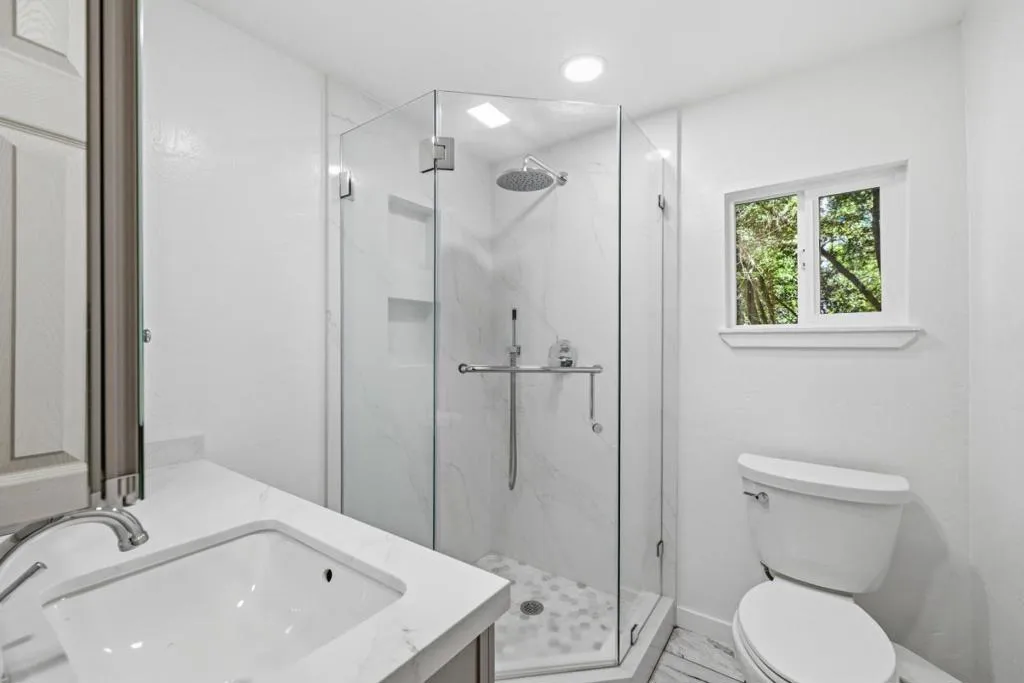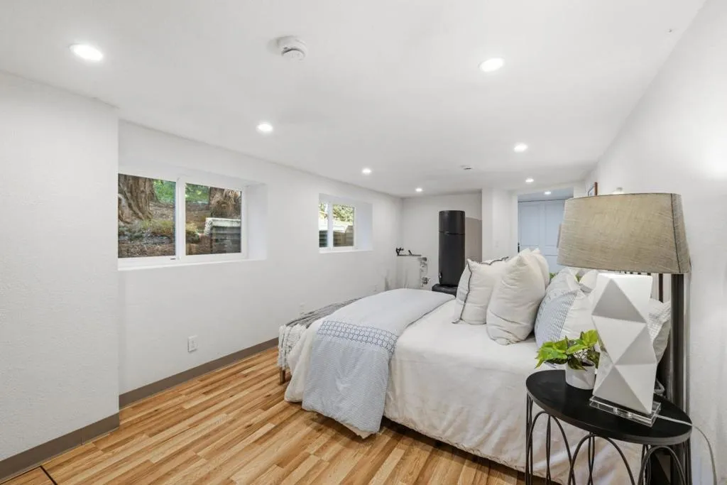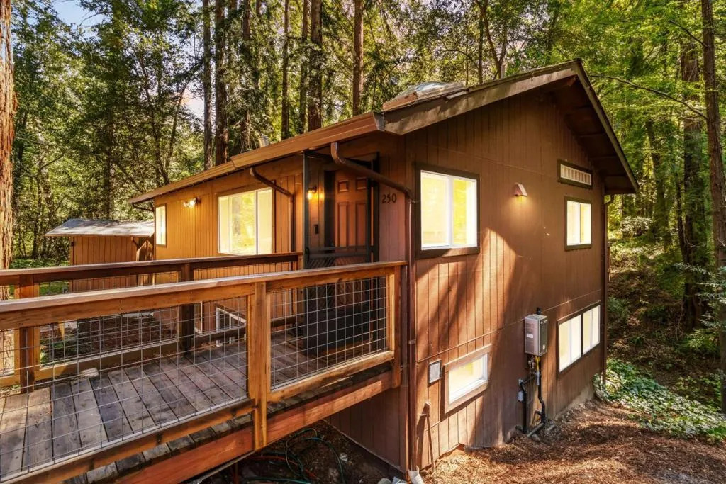 Tucked among the redwoods along a wide, year-round creek, this property offers a rare combination of privacy, flat usable land, and flexible living space on approximately 1/3 acre. With no homes across the creek looking back, the setting feels like your own private sanctuary. Inside, vaulted ceilings and skylights fill the home with natural light, creating a bright and inviting living space that feels larger than the square footage suggests. The open living, dining, and kitchen area flows out to a sunny deck overlooking the trees and creek below, creating a seamless indoor-outdoor connection. Recent improvements include a remodeled bathroom, updated appliances, and new washer and dryer. The lower level features a private entrance and adds valuable bonus space with two large rooms, a laundry area with potential kitchenette, and an unfinished bathroom ready for your custom bath, offering great potential for separate living space. The property also includes a detached garage/workshop and a separate storage shed, providing excellent space for projects, storage, or outdoor gear. Conveniently located just minutes to town, this is a great commute location to Santa Cruz or Silicon Valley while still enjoying the peace and beauty of the redwoods.