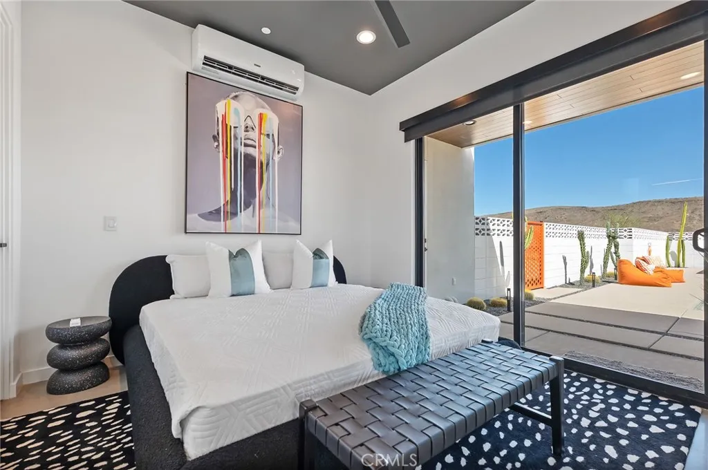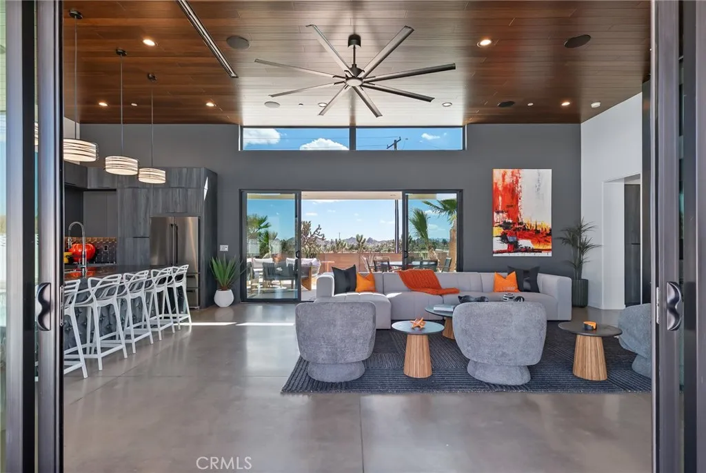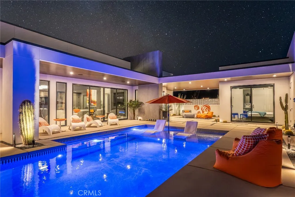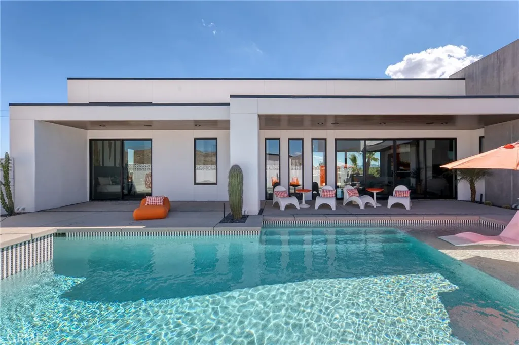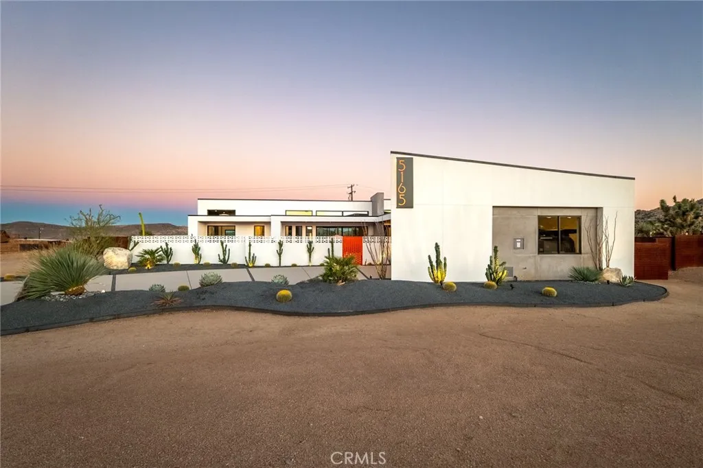 5165 Roy Rogers Road Modern Desert Masterpiece. In the high desert, silence, texture, and light becomes architecture. At 5165 Roy Rogers Road, design and landscape exist in perfect harmony a refined balance of modern form and natural stillness. Set on 1.26 acres in one of Pioneertown’s most coveted settings, this three-bedroom, three-bath residence reimagines desert modern living. A bold white-and-black façade, framed by a breeze-block courtyard and signature orange gate, creates a striking first impression both grounded and sculptural. Inside, expansive walls of glass and polished concrete floors allow natural light to move effortlessly through the space. The open-concept great room flows into a designer kitchen featuring bespoke cabinetry, waterfall-edge stone countertops, and subtle mid-century influences that soften the clean architectural lines. Each bedroom suite offers its own sense of privacy and calm spaces designed for rest, reflection, and a seamless connection to the surrounding landscape. Thoughtfully curated and fully turn-key, the home blends elevated design with everyday comfort. Outdoors, a private courtyard centers around a sleek in-ground pool and spa, surrounded by native landscaping, sunlit patios, and a covered outdoor kitchen designed for year-round entertaining under endless desert skies. Ideally located in the heart of Pioneertown, just moments from iconic destinations like Pappy & Harriet’s and the Red Dog Saloon, this home captures the essence of modern living rooted in desert history. 5165 Roy Rogers Road where Palm Springs polish meets High Desert soul. A timeless architectural retreat, ready to be experienced, shared, and remembered.