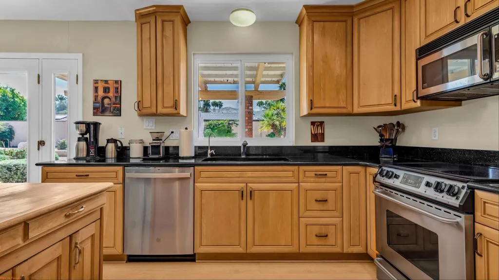 Welcome to an exceptional opportunity in Los Compadres, one of South Palm Springs' most sought-after neighborhoods, celebrated for its wide streets, dramatic mountain views, and timeless desert character. This well-situated 3-bedroom, 2-bath home offers a bright, open layout designed for comfortable daily living and effortless entertaining, with natural light flowing throughout and seamless indoor-outdoor transitions that define the Palm Springs lifestyle.The interior features a flexible floor plan, including a bedroom thoughtfully converted into a dedicated office--ideal for remote work, creative pursuits, or easily accommodating guests. The living spaces open to a private backyard retreat where you'll find a built-in spa, unobstructed mountain views, and a peaceful setting perfect for relaxing under the desert sky. The yard also offers excellent potential for a future pool or expanded outdoor entertaining areas, allowing you to customize your own resort-style environment.Located on a quiet cul-de-sac, the home provides a sense of privacy and serenity rarely found in this central location. Additional benefits include leased solar, offering energy efficiency and cost savings.Situated on lease land through 2067, this property presents an appealing opportunity to enjoy a premier South Palm Springs address at a more accessible price point than many nearby fee-land homes. Its proximity to downtown Palm Springs, golf, dining, shopping, and the airport makes it ideal as a full-time residence, second home, or desert getaway.With potential for short-term rental use (buyer to verify with the City of Palm Springs), the home offers flexibility for both lifestyle and investment-minded buyers--a rare blend of location, value, and the serene desert living that makes South Palm Springs so desirable.
