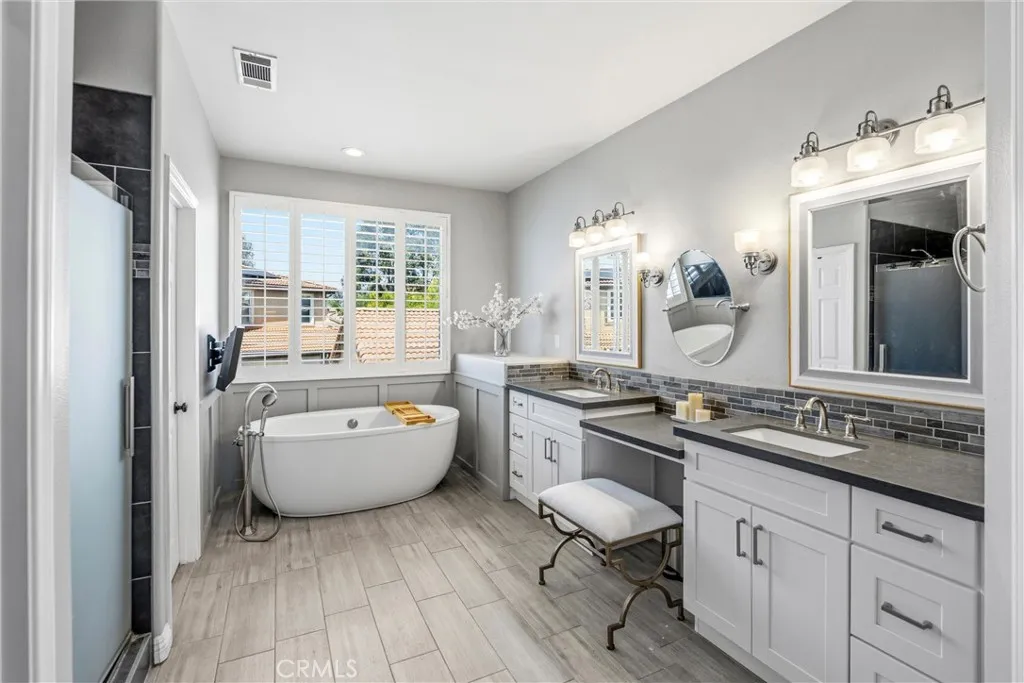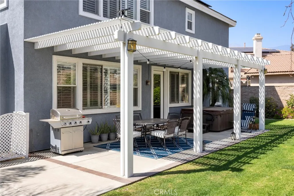 Turnkey home in the highly desired Etiwanda School District featuring a $60K paid solar system-33 panels and a 6 cell battery unit. Welcome to 7133 Brisas Court in Rancho Cucamonga. This beautifully maintained home offers a warm and inviting layout, quality features, and true pride of ownership throughout. One of the standout features is the fully paid solar system (approx. $60,000 value) providing energy efficiency, reduced utility costs, and added reliability. The main level features vaulted ceilings, a spacious living and dining area, and a versatile office that can easily be converted into a bedroom with an adjacent bathroom—perfect for an in-law or guest setup. The kitchen is designed for both function and style, featuring shaker-style soft-close cabinetry and drawers, quartz countertops, glass backsplash, an oversized island, double ovens, a walk-in pantry, and a butler’s pantry with a built-in wine refrigerator. The kitchen opens to a large family room with built-in cabinetry, a fireplace, crown molding and plantation shutters. Upstairs includes a generous loft that works perfectly as a kids’ playroom, homework/study area, or additional family hangout space, giving everyone room to spread out and stay connected. Two bedrooms connected by a Jack-and-Jill bathroom with dual sinks. The primary suite features dual walk-in closets and a bathroom with separate vanities, a built-in makeup area, soaking tub, and a glass-enclosed walk-in shower. The backyard is beautifully landscaped and features a large Alumawood patio cover and an above-ground spa, perfect for relaxing or entertaining. Additional features include dual HVAC systems, Ring doorbell, automated sprinkler system. Large 4 car tandem garage with racks included. Shed for extra storage. The best part is location. Nearby fwy access for the commuter. Victoria Gardens for the shopper. Fantastic schools for the family and so much more. This home is worth a look don't miss out!