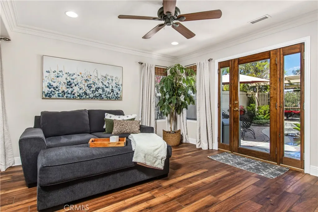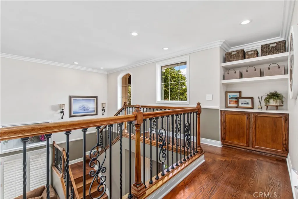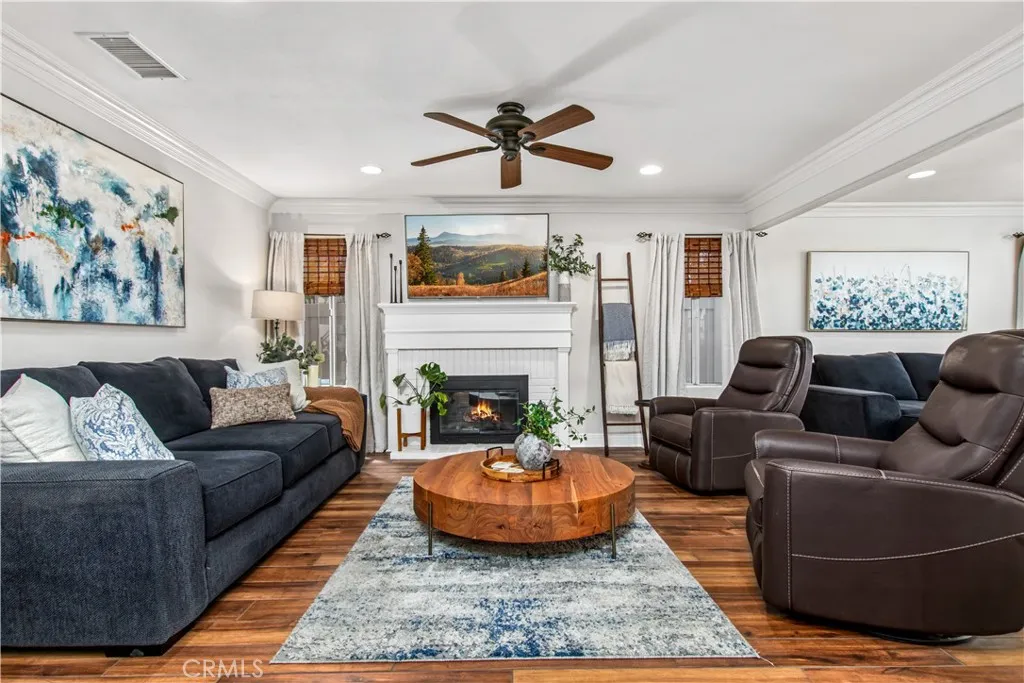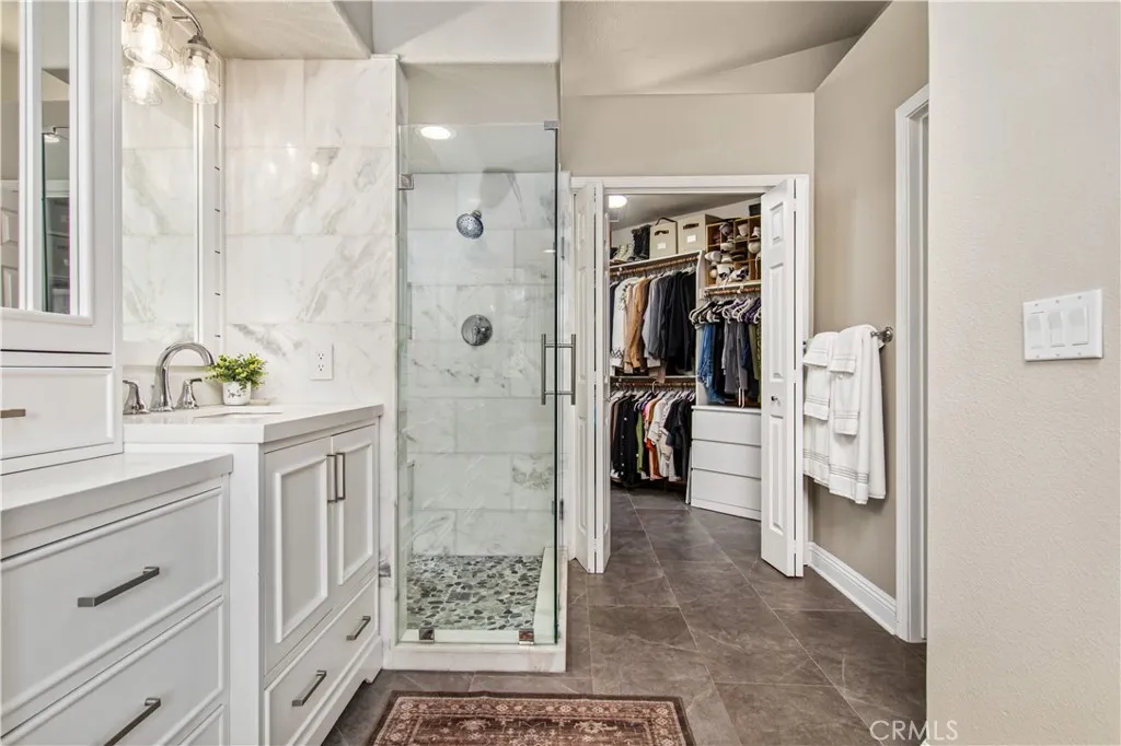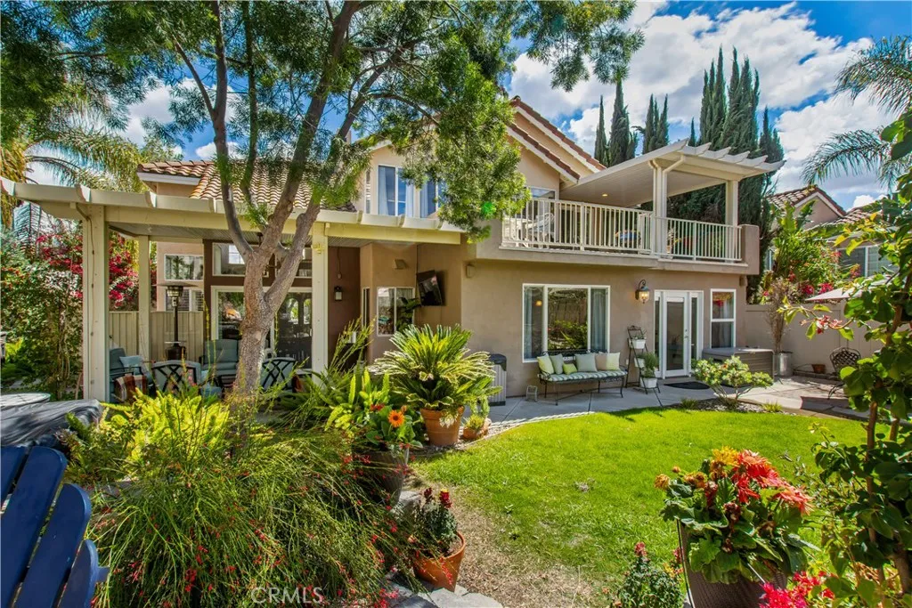 Beautifully renovated 4 bedroom, 3 bathroom home with a 3 car garage, ideally positioned on a private view lot backing to a park with no rear neighbors. Located in a pride-of-ownership neighborhood known for friendly neighbors and a peaceful setting, this move-in ready home offers elevated views, privacy, and exceptional indoor-outdoor living. Inside, the open-concept layout is enhanced by soaring cathedral ceilings, custom built-in shelving, and thoughtful upgrades throughout. The home makes a striking first impression with Spanish-style alder wood and wrought iron double front doors, complemented by upgraded wrought iron stair rails that add architectural character. The remodeled kitchen features a large island with pull-out trash, quartz countertops, white shaker soft-close cabinetry, Kohler farmhouse sink, coffee bar with open shelving, under-cabinet lighting, and upgraded stainless appliances including Bosch double ovens, cooktop, and dishwasher. The spacious primary suite is a true retreat, complete with a private upper deck, sitting nook, cedar-lined walk-in closet, and a spa-inspired bathroom featuring a soaking tub, shiplap accents, custom storage tower with built-in electrical, and shower seating. A standout feature of the home is the custom wet bar with glass shelving, wine and beverage refrigerator, and upgraded sink and faucet, creating the perfect space for entertaining. Additional interior highlights include Italian porcelain wood-look tile, solid oak stairs and landing, new carpet, upgraded secondary bathrooms with quartz counters, newer sliders, select newer windows, upgraded interior doors, a 3-zone A/C system with intelligent thermostat, and a whole house fan for added efficiency and comfort. The backyard is a private escape with no neighbors behind and is designed for both relaxation and entertaining, featuring mature landscaping, terraced hardscape, two covered patios, gas fire pit, and a hot tub. Exterior improvements also include vinyl fencing with gate, roll-up garage doors, and a 4-zone automatic sprinkler and drip irrigation system. This is a rare opportunity to own a turnkey home with privacy, views, and extensive upgrades in a truly special setting.