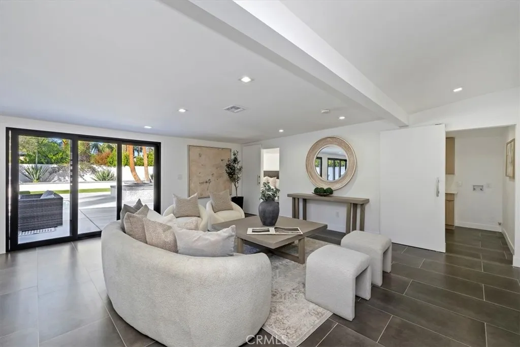 Experience modern luxury in this fully reimagined single-story home in the desirable Tahquitz River Estates. Situated on a generous 9,583 sq ft flat lot, this 4-bed, 3-bath, 2,554 sq ft residence was taken down to the studs, reconfigured with an open-concept layout, and rebuilt with full City permits, including all-new plumbing, electrical, insulation, drywall, HVAC, roof, windows, doors, flooring, fixtures, appliances, hardscaping, and landscaping. A sleek modern entry leads into an expansive living and dining area with oversized sliders showcasing stunning mountain views and true indoor/outdoor flow. The showpiece chef’s kitchen features a massive waterfall island, custom cabinetry, premium quartzite slab counters, full slab backsplash, stainless steel appliances, double ovens, a 6-burner range, wine/beverage storage, and designer lighting. The primary suite is a private retreat with vaulted ceilings, a modern fireplace, picture-window views, a walk-in closet, and a spa-caliber bathroom with an oversized glass shower, dual rainheads, skylight, floating vanity, and premium tilework. Three additional bedrooms offer exceptional versatility, including two en-suite rooms perfect for guests, multigenerational living, or home office needs. All bathrooms feature frameless glass showers, LED-lit mirrors, and floating vanities. The backyard delivers the ultimate Palm Springs resort experience with a newly renovated inground pool & spa, expansive patios, modern hardscaping, privacy walls, mature palms, and unobstructed desert hill and mountain vista views; ideal for entertaining or peaceful sunset evenings. Located in the coveted Tahquitz River Estates, this home offers quiet streets, lush palms, and unbeatable proximity to downtown. Just minutes from world-class dining, boutique shopping, art galleries, spa resorts, golf, and scenic hiking trails, the location blends serenity with convenience. Whether you seek a full-time residence, a weekend sanctuary, or a high-performing vacation rental, this property delivers the luxury and lifestyle buyers want. Move-in ready, fully renovated, and impeccably designed. Tour this exceptional Palm Springs retreat today.