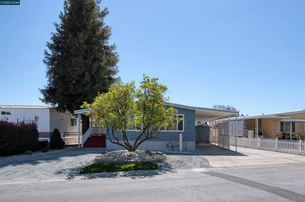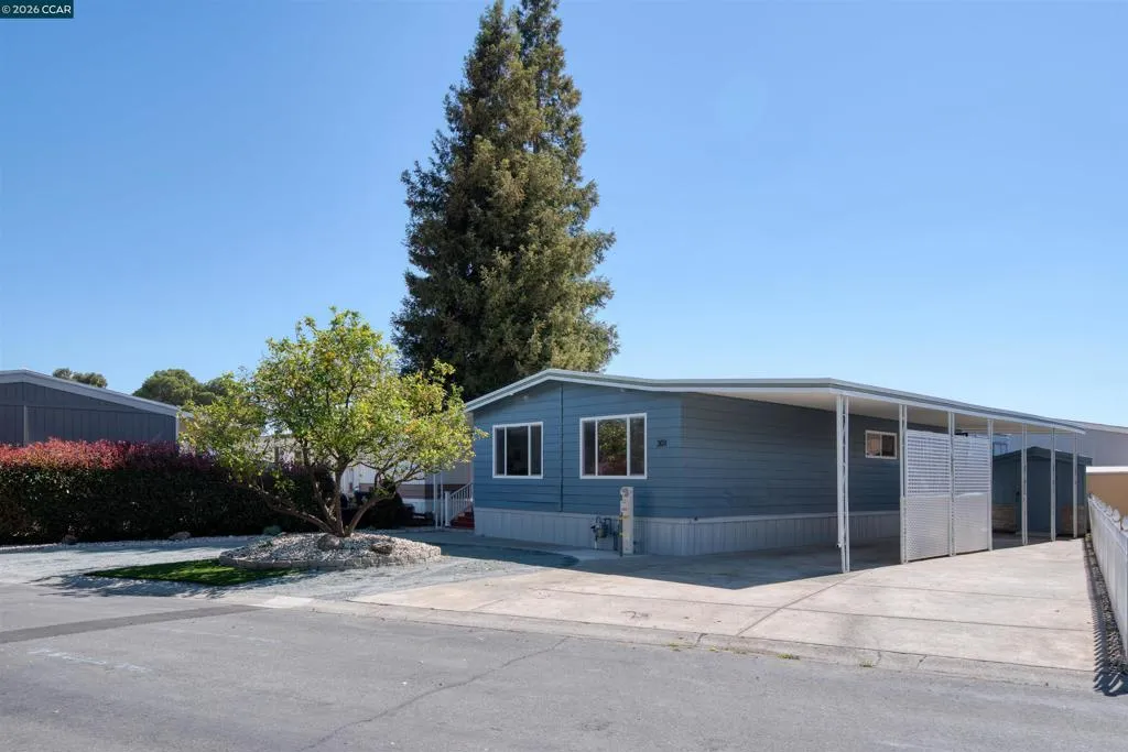 Luxury living at its finest, this picture perfect double wide manufactured home has been thoughtfully renovated with modern upgrades throughout, featuring 3 bedrooms, 2 bathrooms and approximately 1,440 square feet of living space. The interior features a spacious layout with a large living room, dining area and abundant natural light throughout. Upgrades include NEW wall texture, fresh designer paint, new energy efficient recessed LED lighting and LVP flooring throughout, creating a clean, modern and move-in ready environment. The fully updated kitchen showcases shaker style cabinetry, quartz countertops, tile backsplash and new appliances, all designed with both style and functionality in mind. Bathrooms have been fully renovated with updated fixtures and finishes. Exterior highlights include a mature, fruit-bearing lemon tree that enhances the front setting along with an outstanding and rare parking configuration featuring a circular driveway plus a separate covered carport with direct access. A covered outdoor patio and sitting area provide additional space for relaxing or entertaining. Located in the Diablo Vista 55+ community, residents enjoy access to amenities including a clubhouse and pool. Conveniently situated near shopping, dining and major commuter routes Fireplaces: NO
