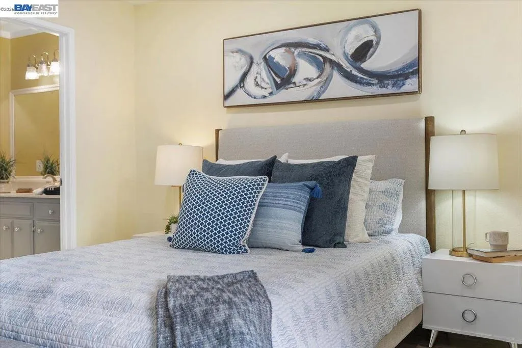 Best value in Union City for a 1,100+ sq ft townhome. - don't miss this golden opportunity. Welcome to this light-filled and well-appointed townhome in a prime Union City location - an ideal opportunity for both first-time buyers and savvy investors. The open-concept living and dining area is anchored by a cozy fireplace and flows effortlessly to a private patio, offering a comfortable space for everyday living and easy entertaining. The functional kitchen provides ample cabinetry and storage, while upstairs features two generously sized bedrooms. The oversized primary suite includes a large walk-in closet and a private balcony - perfect for relaxing at the end of the day. The second bedroom is bright and versatile, ideal for a guest room, home office, or future flexibility. Additional highlights include in-unit laundry with washer and dryer included, assigned carport parking and an open parking, and a well-maintained community - features that enhance everyday convenience and long-term value. Located close to parks, schools, shopping, dining, and entertainment, with quick access to I-880, Dumbarton Bridge, and BART - this is a commuter-friendly home in a high-demand Bay Area corridor. A smart entry point into homeownership and a strong long-term hold in a desirable neighborhood.