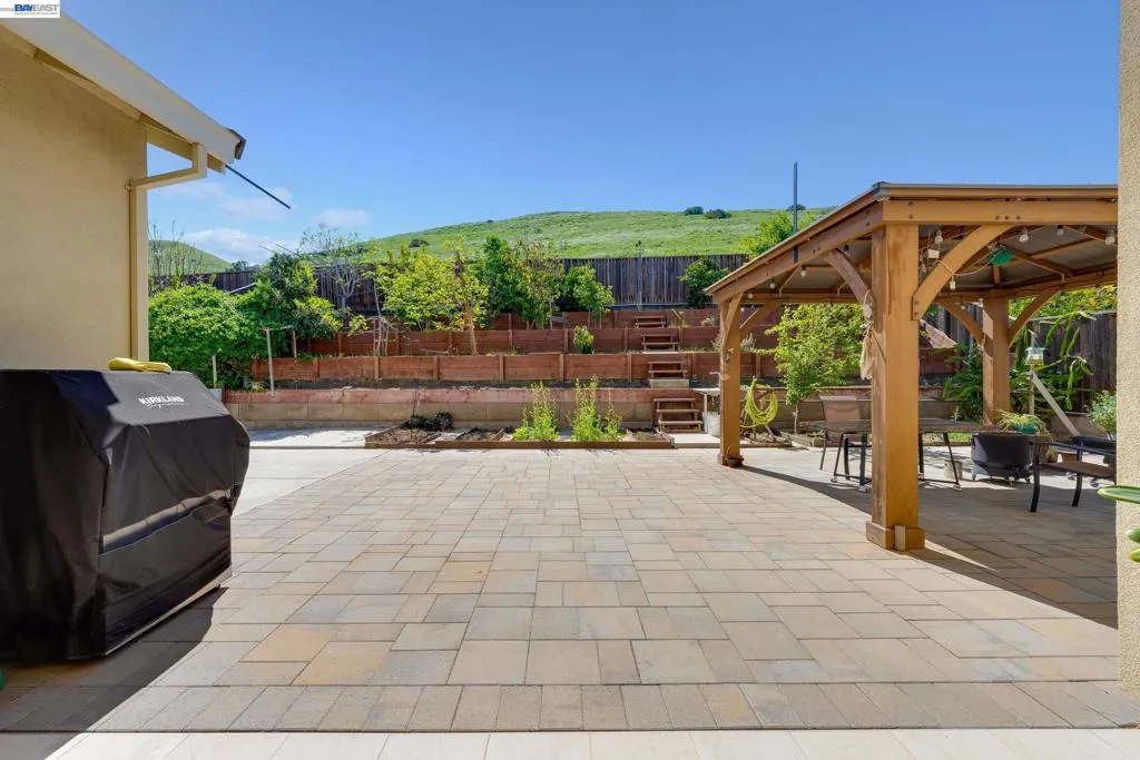 Rare single-story "Victory" model on a large lot in desirable Vista Del Mar! This hard-to-find 4-bedroom, 3.5-bathroom masterpiece features an exceptional open-concept layout designed for seamless entertaining. The gourmet kitchen is a chef’s dream, boasting an oversized center island, upgraded stainless appliances, and ample cabinetry, all flowing into a family room anchored by a cozy fireplace and built-in surround sound. The versatile floor plan includes two spacious bedroom suites plus two additional guest rooms and ceiling fans throughout. Modern laminate and tile flooring lead you outdoors to a stunning California Room. Experience ultimate privacy with no rear neighbors, scenic hillside views, a private orchard setting, and a generous gazebo. This is a rare combination of luxury, functionality, and tranquil indoor-outdoor living!