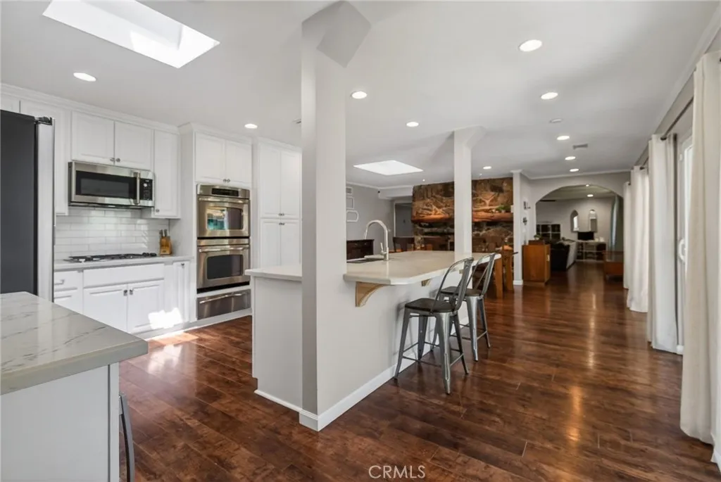VICTORIA WOODS-a masterpiece of elegance nestled in the heart of Riverside’s prestigious Victoria Woods community. This luxurious 4-bedroom, 3-bathroom residence is perfectly positioned on a sprawling corner lot at the beginning of a peaceful cul-de-sac, offering both privacy and sophistication. A home trending in design meets timeless craftsmanship. The newly renovated open floorplan is a showstopper, featuring a professionally curated custom kitchen ornamented with sleek stainless-steel appliances, a double oven AND A Leaven/dough riser also known as a bread warming drawer, and quartz countertops that sparkle from its cleanliness and natural light. The king-size island invites gatherings, while the dining area exudes warmth and charm, setting the stage for cherished meals. The family room, anchored by a stunning double fireplace with two personalized hand-made mantles crafted from timber from Big Bear Mountain, is the epitome of cozy luxury. The outdoor grounds are a sanctuary of “FUN”ction and beauty. Professionally designed water-wise landscaping envelops the property, complemented by mid-century breezeway block walls in pristine condition. The custom Swing Kingdom Amish-designed playground, complete with premium turf with 2-inch padding and multiple heavy-duty Sail Shade coverings, create a haven for play AND safety. Stacked, mortarless planters brim with fragrant heirloom herbs like lavender and rosemary, adding a touch of garden elegance. Retreat to the alluring primary suite, where a spa-inspired multi-head shower awaits! Something special to offer in this home is the ability to host extended family/guests in the thoughtfully designed mother-in-law quarters which are ensuite equipped—perfect for multi-generational living if that should suit your family needs. A detached garage with ample parking and amenities like a Alumawood patio and a separate side yard for a sunny garden spot, storage add both convenience and style. Located just moments from highly sought-after schools (Poly High, Alcott, and Gage), shopping plus Victoria Country Club for golf and fine dining is just a couple blocks away, this home offers a lifestyle of unmatched ease and refinement. With quick access to the 91 and 60 freeways, every convenience is at your fingertips. Experience indulgence redefined—this is more than a home; it’s an elevated way of living.