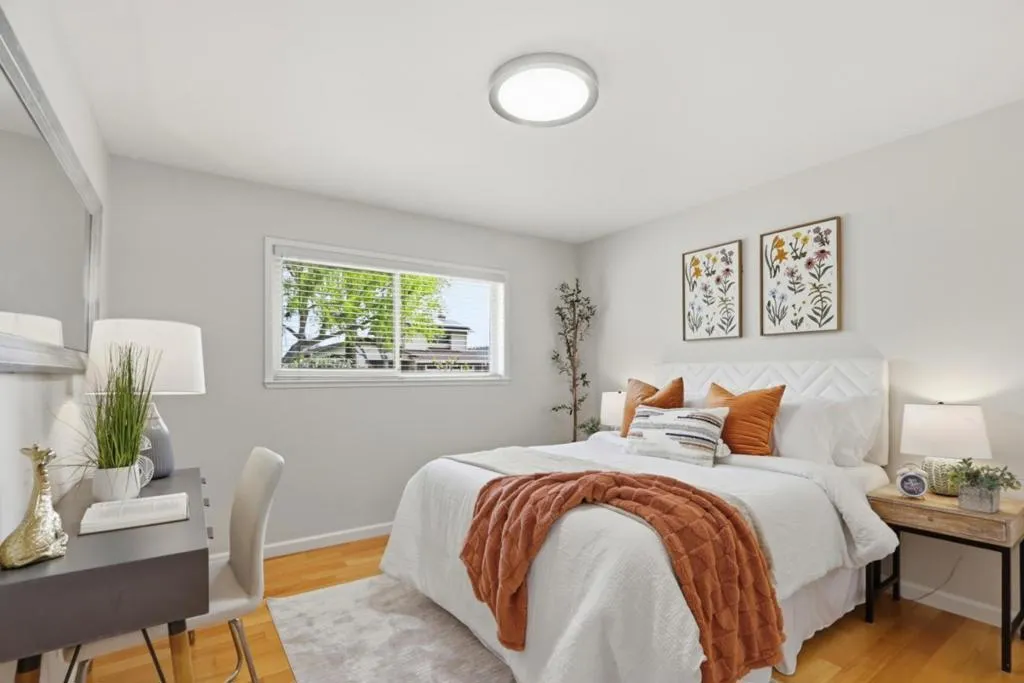 Stunning Birdland Home Prime Sunnyvale Location! Nestled on a quiet street in the highly sought-after Birdland neighborhood. Fabulous move-in ready. Bright, clean, and spacious layout with numerous upgrades. Features include fresh interior & exterior paint, upgraded dual-pane windows, a composition shingle roof and gutters (only 3 years new), solid hardwood floors throughout, central forced heat & A/C. Excellent floor plan, separate living room, family room, and dining area with recessed lighting. Family room with gas fireplace and a large picture window in the living room providing abundant natural light. Updated kitchen with white cabinetry, quartz countertops, breakfast bar, full subway tile backsplash, stainless steel dishwasher, and gas GE range. Quiet primary suite with walk-in closet and fully remodeled bathrooms. Attached 2-car garage with washer/dryer. Professionally landscaped yard with spacious patio, lush lawn, mature drought-tolerant plants, and automatic irrigationperfect for outdoor entertaining. Walking distance to Raynor Park, Laurelwood Elementary, BASIS Independent School, Cupertino Village (99 Ranch Market & dining), Apple, and Kaiser Santa Clara Medical Center. Minutes to Google, Nvidia & major tech campuses. Easy access to Highway 280, 85, 101 & 237.