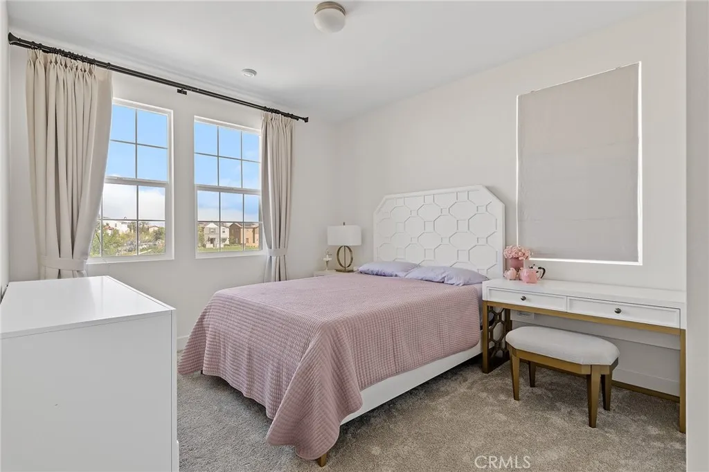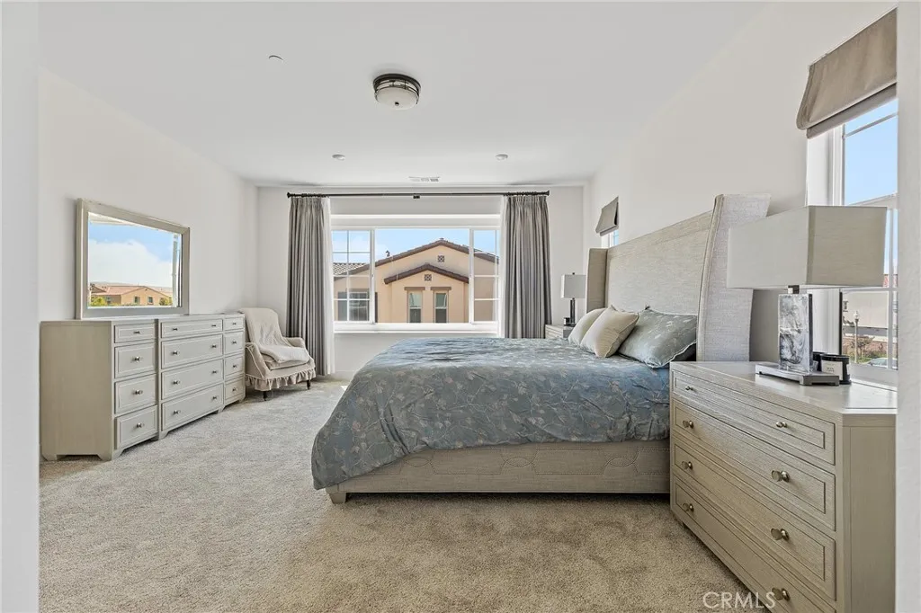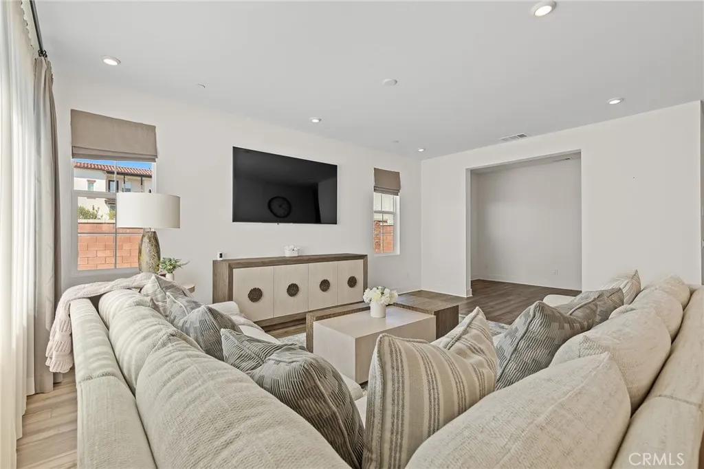 Welcome to a stunning, nearly new residence nestled in the highly sought-after community of The Preserve at Chino—a vibrant master-planned neighborhood spanning over 5,400 acres in Chino. Built in 2022, this exceptional two-story single-family home offers 5 bedrooms, 5 bathrooms, and approximately 3,346 square feet of thoughtfully designed living space on a generous 7,111 square foot corner lot with an expansive backyard—perfect for entertaining, relaxing, or creating your dream outdoor oasis. Step through a grand foyer and discover a highly desirable main-level suite to your right, complete with its own private living area, bedroom, and full bathroom—ideal for multi-generational living or guest accommodations. Continue into the heart of the home where an open-concept great room seamlessly blends a spacious living area, an exercise space, and a beautifully appointed kitchen. The kitchen is a chef’s dream, featuring a large center island, modern stainless steel appliances, and a walk-in pantry, all flowing effortlessly into the dining area. Oversized sliding glass doors invite abundant natural light and create a seamless indoor-outdoor connection to the expansive backyard. Upstairs, retreat to the luxurious primary suite offering a spa-inspired bathroom with dual vanities, a soaking tub, a separate walk-in shower, and a generously sized walk-in closet. Three additional bedrooms, two full bathrooms, a spacious loft perfect for family gatherings, and a dedicated office space complete the upper level. This home is filled with natural light thanks to numerous windows and sliding doors throughout. Energy efficiency is enhanced with 15 fully paid-off solar panels, providing long-term savings and sustainability. Ideally situated facing a serene community park, residents also enjoy access to three beautifully designed clubhouses—with a fourth currently under construction—offering resort-style amenities and a true sense of community. This is a rare opportunity to own a modern, spacious home in one of Chino’s most desirable neighborhoods—a must-see!