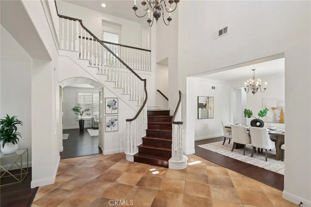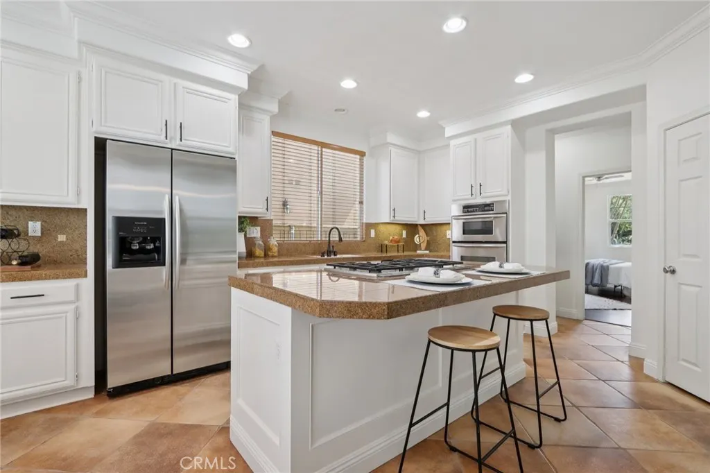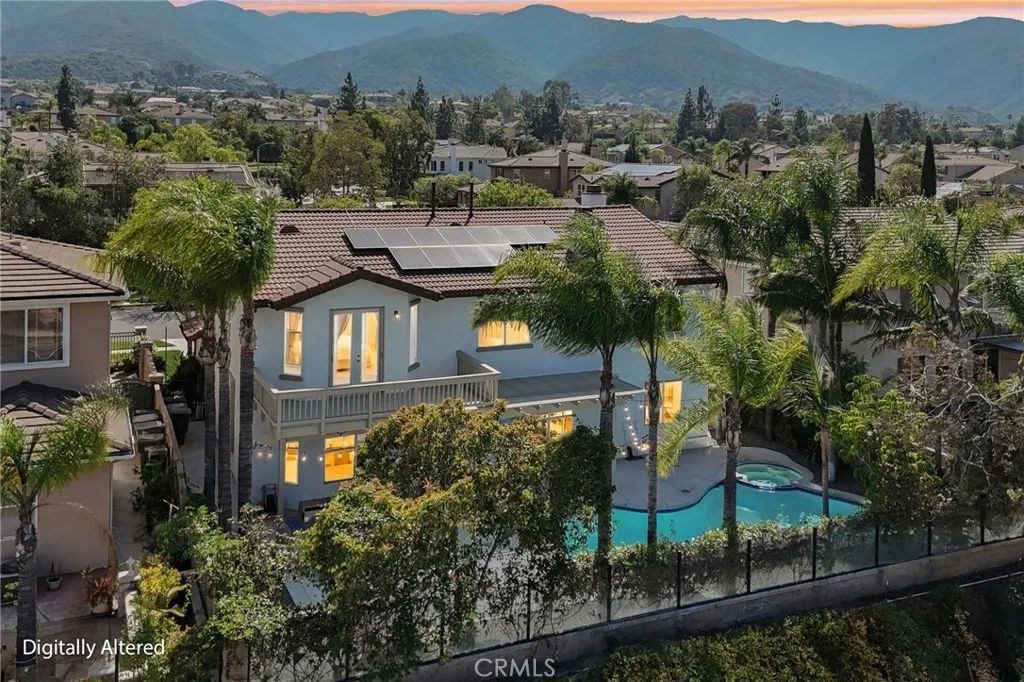 PAID OFF SOLAR-43 PANELS| POOL| VIEWS| 2) DOWNSTAIRS BEDROOMS Welcome to this highly upgraded, luxury pool home. A wide front porch and extended driveway set the tone for this executive South Corona residence, offering exceptional curb appeal, tons of parking, and no HOA. With no neighbors directly across the street, the home enjoys added privacy and an open feel. Inside, you’re welcomed by cathedral ceilings, formal living and formal dining rooms designed for both entertaining and everyday life. New high-quality upgraded flooring runs throughout the home, complemented by freshly painted interior and exterior finishes that create a clean, cohesive look. The upgraded kitchen is designed with modern finishes, a Butler’s pantry for additional prep and storage space, and seamless flow into the family room featuring built-in cabinetry. A large laundry room with sink and tons of storage adds everyday convenience. Two downstairs bedrooms provide flexible living options, including one with its own separate exterior entrance, perfect for multigenerational living, guests, or a private office. A full bathroom is located adjacent to the 2nd downstairs bedroom. Upstairs, the spacious primary suite offers French doors leading to a private balcony with sweeping mountain and city views. The suite includes a large walk-in closet and an updated primary bath with new fixtures and finishes, creating a peaceful retreat. Additional upgrades include a new HVAC system, newly painted exterior, fresh concrete work, built-in garage cabinetry, an under-stair storage closet, and upgraded bathrooms with new fixtures, paid off solar with 43 panels. With a beautiful pool, newly re-plastered, gorgeous mature landscaping and a built in BBQ, the backyard offers space to relax and entertain, while the location places you in the heart of South Corona’s executive home community, near top-rated schools, shopping, Skyline hiking trails, and convenient access to the 15, 91, 241, and 71 freeways.