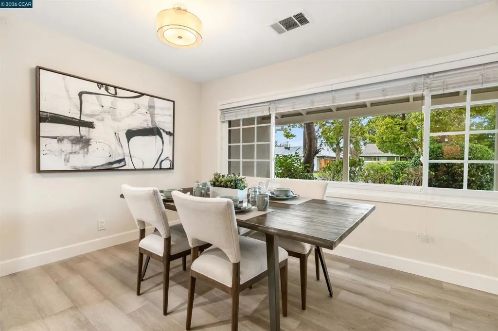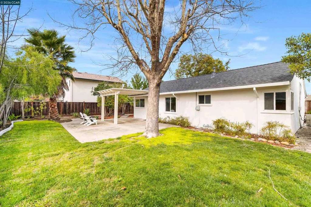Welcome to 113 Margie Drive, a thoughtfully maintained Pleasant Hill home nestled in the desirable Gregory Gardens neighborhood, just minutes from downtown. From the moment you arrive, this home exudes comfort and ease, making it feel instantly inviting. Step inside to a spacious great room anchored by a classic brick fireplace, perfect for cozy evenings, casual gatherings, or simply unwinding at the end of the day. Fresh interior paint and updated laminate flooring flow throughout, creating a light, neutral backdrop ready to complement any style. The open layout connects the living spaces seamlessly, ideal for both everyday living and entertaining. The kitchen features an eat-in area and easy access to the backyard, making morning routines, family meals, & outdoor dining effortless. Outside, the backyard is a private retreat, surrounded by mature landscaping that enhances the sense of calm and seclusion. A covered patio provides a comfortable space to entertain, while lemon trees add charm & character, inviting relaxed evenings and quiet mornings alike. Recent updates include a brand-new composition shingle roof, fresh exterior paint, new landscaping, and refreshed interior paint in the bathroom and portions of the family room. All within easy reach to downtown Pleasant Hill!