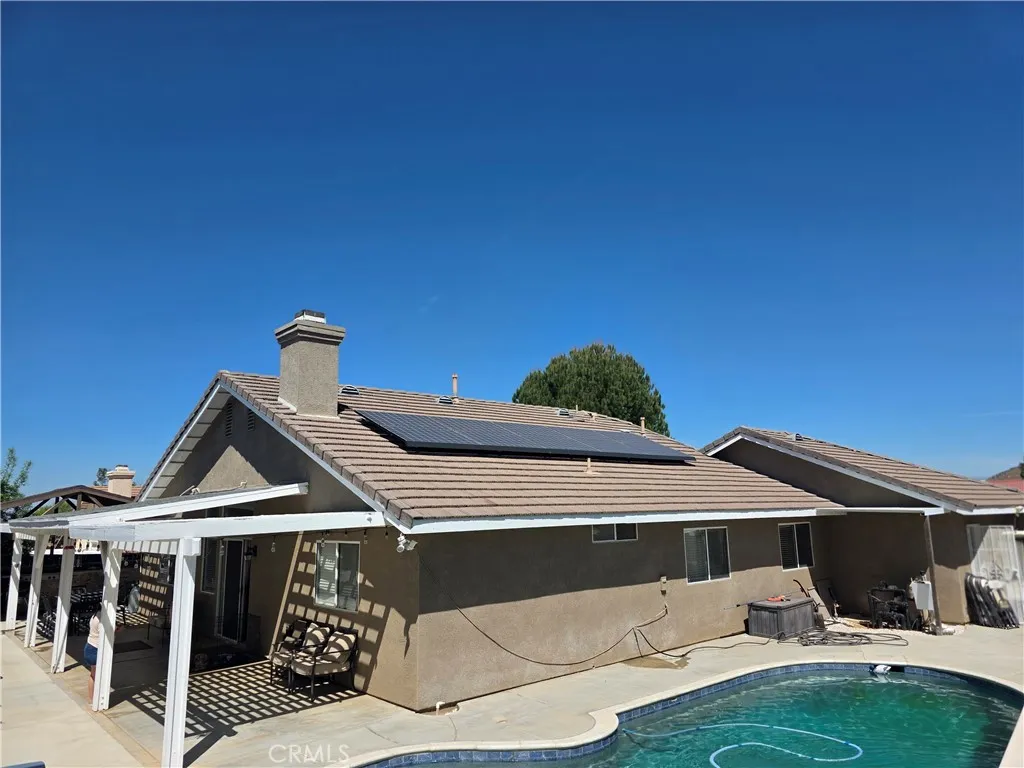 Single story 4 bedroom 2 bathroom Pool home. Fireplace in living room that opens up to the updated kitchen, separate formal living room, wood flooring in kitchen, living rooms, & hallway, carpet in bedrooms. Great backyard for entertainment. Sparkling pool & spa, covered patio with built in BBQ, outdoor gas fire pit. 3 car garage, hidden RV parking. NO HOA Solar Panels