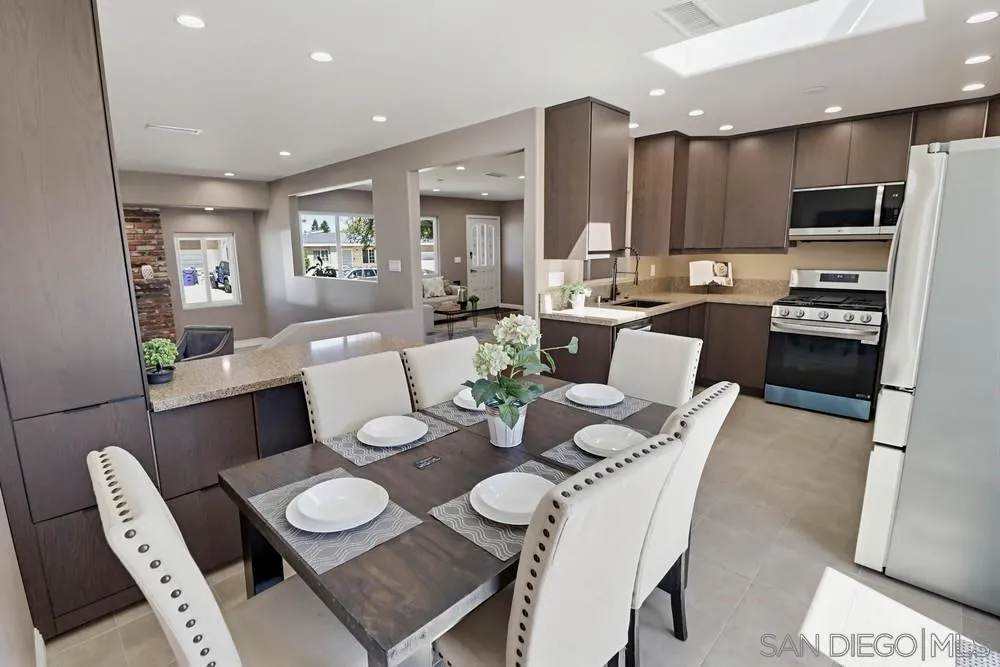 Welcome to this stunning, fully renovated single-level home in the highly desirable Rolando Village neighborhood. Rebuilt down to the studs, this turnkey residence offers the perfect blend of modern comfort, thoughtful upgrades, and timeless charm. Nearly every major component has been replaced, including a brand-new roof, new HVAC system, updated plumbing, and a fully upgraded 200-amp electrical panel. Inside, you’ll find luxury laminate wood flooring, recessed lighting throughout, in-wall speaker wiring, hardwired exterior security cameras, and a whole-house fan for enhanced energy efficiency. Additional upgrades include dual-pane windows, a skylight in the kitchen, and a dedicated laundry room with washer and dryer. The beautifully remodeled kitchen features new cabinetry, granite countertops, and all-new appliances, making it ideal for everyday living and entertaining. The inviting family room is anchored by a cozy fireplace, while the separate living room provides additional space to relax or host guests. Both bathrooms have been fully renovated with modern finishes. With RV parking and potential for an ADU, this property offers excellent opportunities for additional income, multigenerational living, or expanded workspace. Enjoy the best of urban convenience with a suburban feel. This home is ideally located near San Diego State University, shopping, parks, schools, recreation centers, and major freeways, with easy access to nearby La Mesa. Don’t miss your chance to own a fully upgraded home in one of San Diego’s most charming and centrally located neighborhoods.