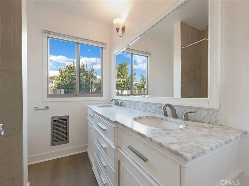 Welcome to 22222 Vanowen Street, a charming and updated home in Woodland Hills. This 5-bedroom, 2-bath residence offers approximately 1,800 sq ft of living space, featuring luxury vinyl flooring, white shaker cabinets, Calacatta quartz countertops, and stainless steel appliances. Situated on a lot with two homes, this is the main residence, with a separate unit located at the rear. The home includes central heating and air, with uncovered rear parking via alley access and additional street parking. Tenant pays all utilities. Pets considered upon submission. Conveniently located near shopping, dining, and public transportation. Ready for immediate move-in.