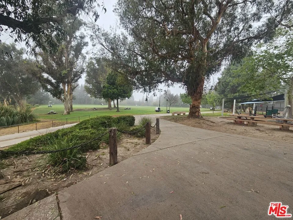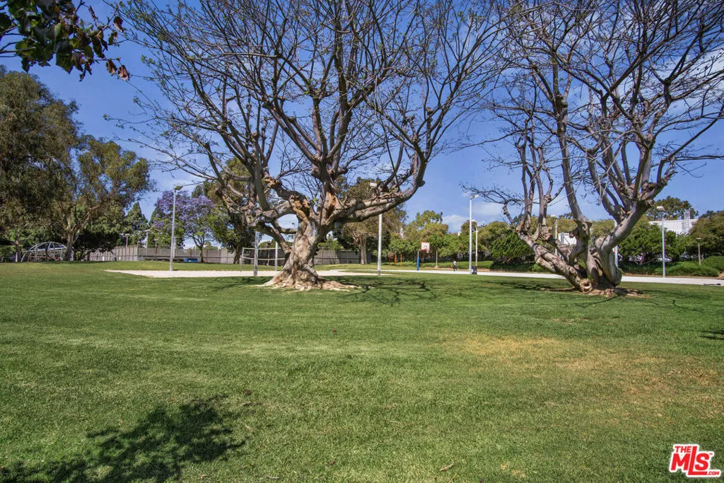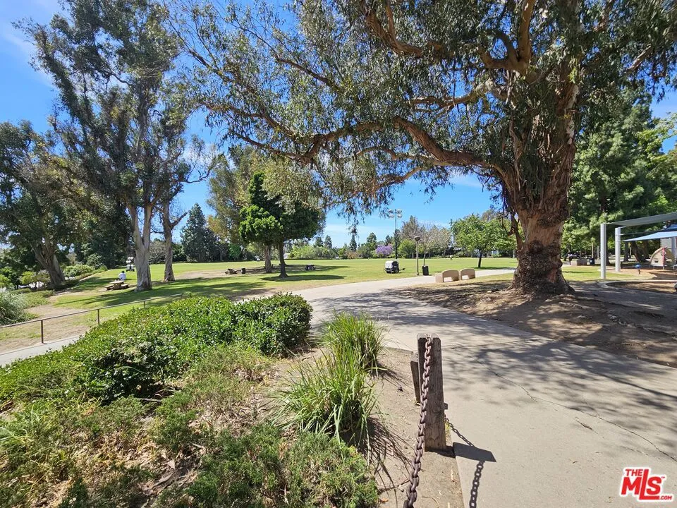 Secure, top floor, front facing, single level 2BD/2BA condo directly across from Fox Hills Park. Well proportioned layout with split floor plan - Primary suite sits on one side while second bedroom is on the other for maximum privacy. The condo offers abundant closet space, dual glazed windows and a balcony off the living room. View of the park from some rooms. Kitchen has own service entrance. Nicely upgraded primary suite bath. Convenient side by side parking and extra storage space in gated garage. Condo is move in ready with room for some cosmetic upgrades if desired. Smaller well maintained building with pool. Excellent location close to LAX, Freeways, Fox Hills Mall, studios and Playa Vista. Trust sale.
