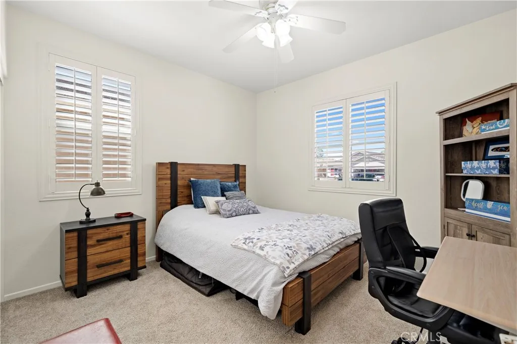 Welcome to effortless living in this beautifully upgraded Masters 2 single-story home, tucked away on a quiet cul-de-sac in the highly desirable 55+ gated community of Four Seasons Hemet. From the moment you arrive, the exceptional curb appeal and pristine condition set the tone for what’s inside. This thoughtfully designed home offers 2 spacious bedrooms, 2 full baths, and a versatile office, ideal for hobbies, guests, or working from home. Step inside to a light, inviting interior with fresh paint, a blend of plush carpet in the bedrooms and office, and elegant tile flooring throughout the main living areas. Plantation shutters and ceiling fans add both comfort and style. The heart of the home is a beautifully updated kitchen featuring brand-new appliances and a convenient butler’s pantry, perfect for entertaining and everyday ease. The primary suite is a peaceful retreat with a generous walk-in closet and a spa-like bathroom complete with dual sinks, a walk-in tub, and private commode. Step outside to your own low-maintenance backyard oasis, where an Alumawood patio cover, artificial turf, and decorative river rock create the perfect setting for relaxing or gathering with friends. Living in Four Seasons means enjoying resort-style amenities every day—24-hour security, clubhouse, bistro, ballroom, theatre, fitness center, pool and spa, plus tennis, pickleball, bocce, and more. Ideally located near Diamond Valley Lake, Temecula Wine Country, and within easy reach of Palm Springs, San Diego, and Los Angeles, this home offers the perfect blend of tranquility and accessibility. Turnkey, stylish, and ready to enjoy—this is the lifestyle you’ve been waiting for.